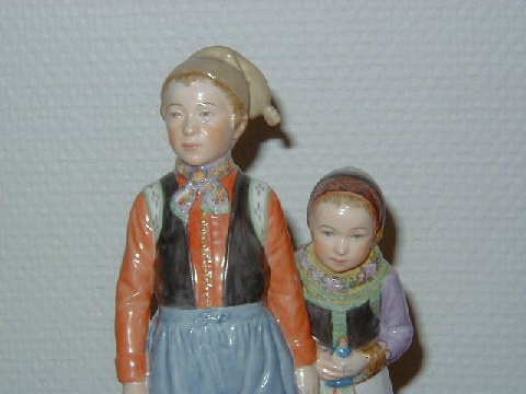 Kongelig Overglasur figur af To Børn i Amagertøj. Højde 22 cm, længde 12,5 cm. Dek. nr. 12106, 1. sortering. Perfekt stand.