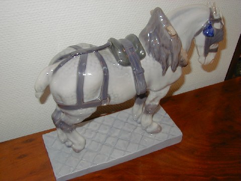 En stor Kongelig Figur af Hest med mange flotte detaljer. 1. sortering, dek. nr. 471, højde 28 cm., længde 34 cm.
