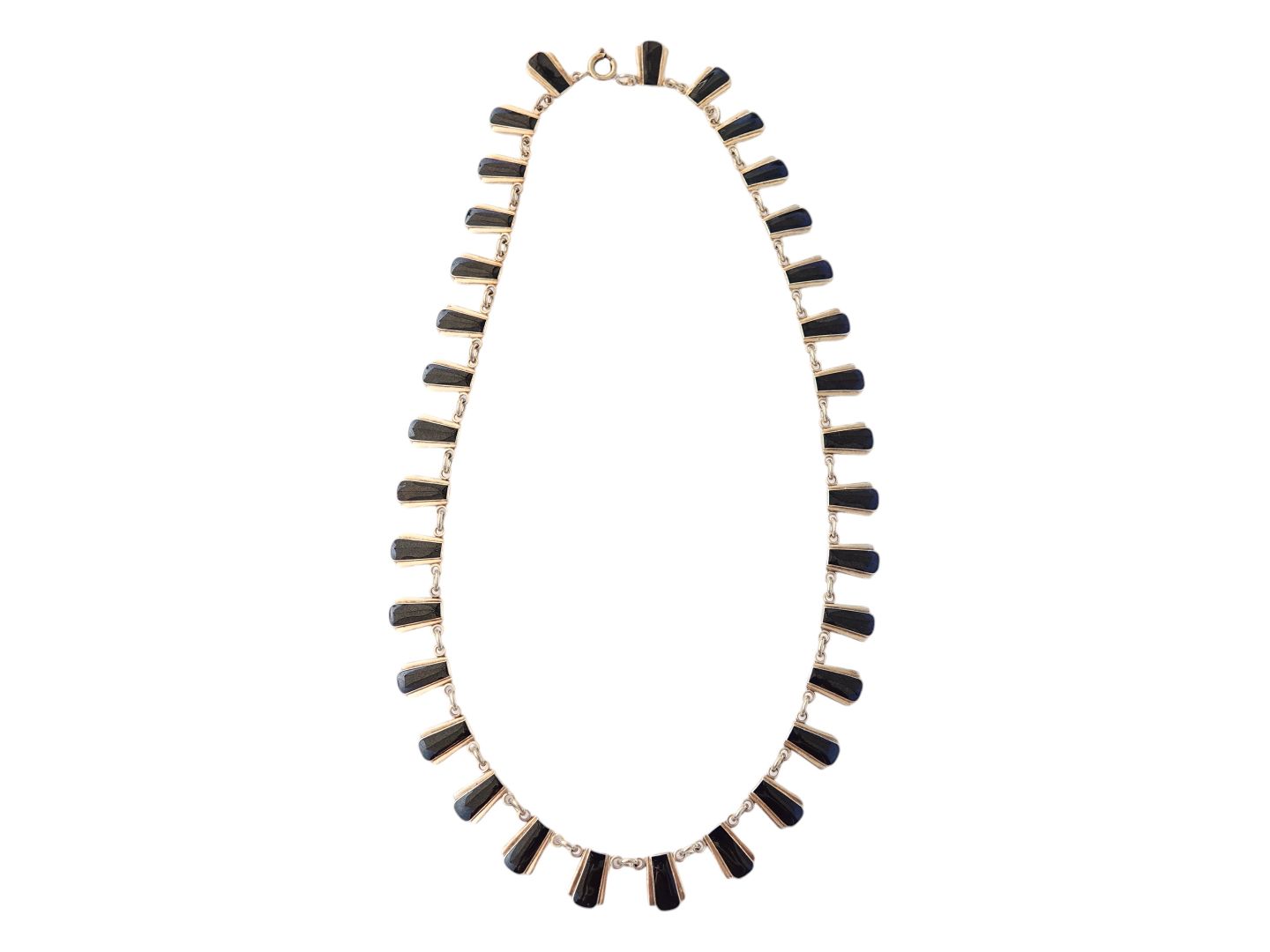 Volmer Bahner & Co sterling silver, gilded necklace with black enamel. Hallmarked "VB STERLING DENMARK". Volmer Bahner & co was a silversmith in Copenhagen from 1962 until 1987. Length 42.0 cm. Excellent condition.