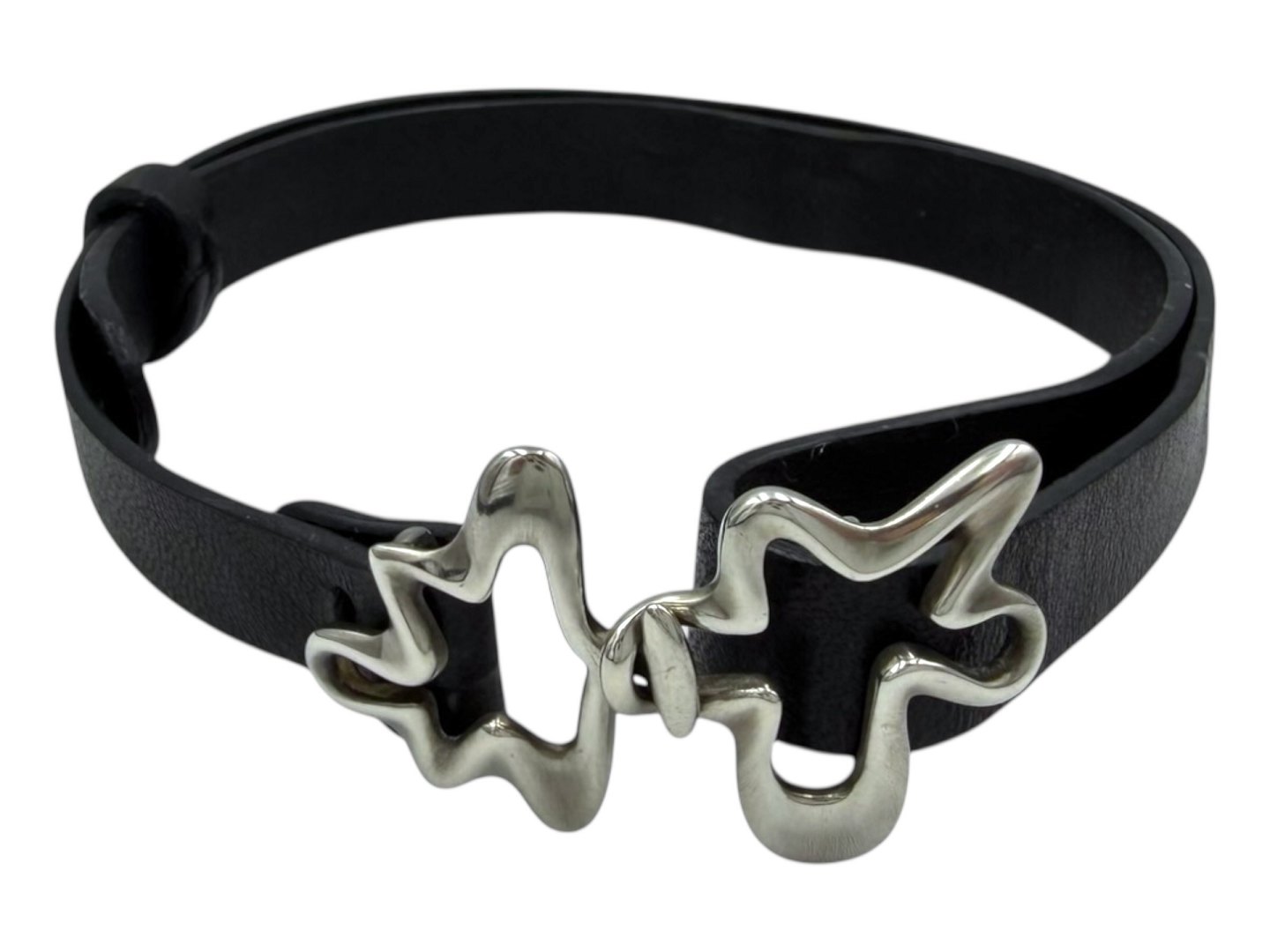 Georg Jensen sterling silver, Splash bracelet with original black leather.