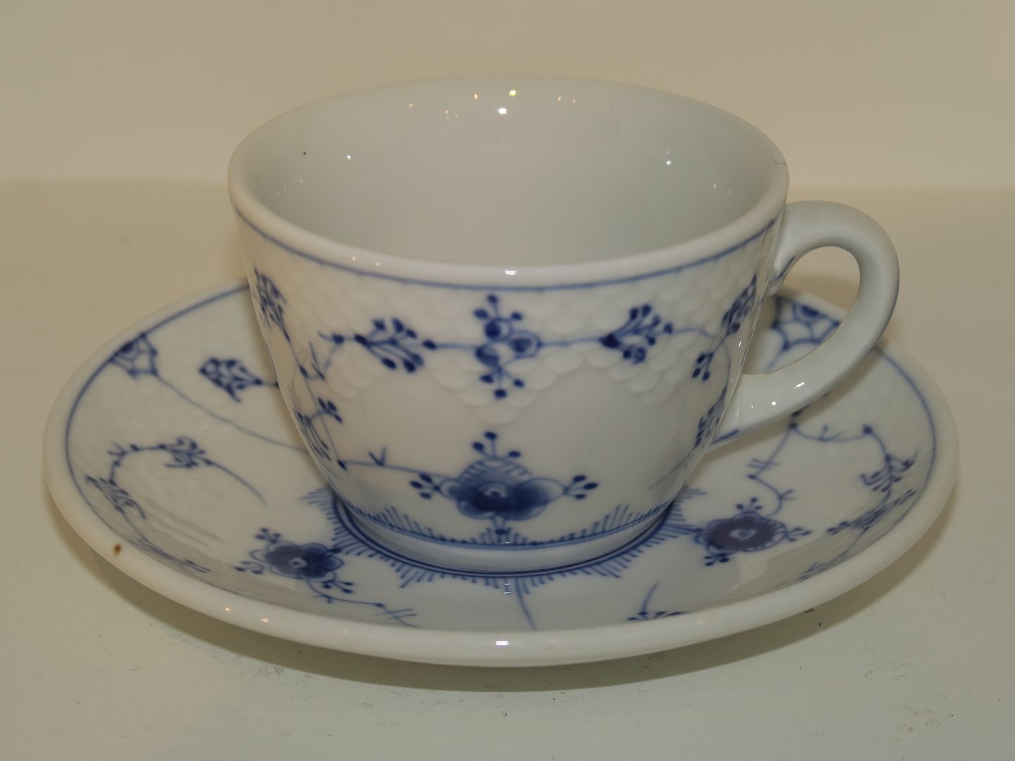 Bing & Grøndahl Blåmalet Hotelporcelæn / jernporcelæn (musselmalet), stor kaffekop med underkop.