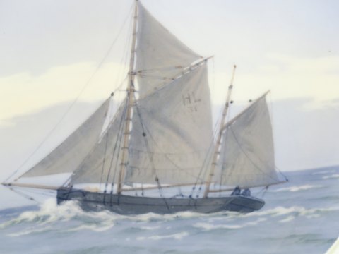 Ekstra stor platte med sejlskib på havet fra 1923-1928