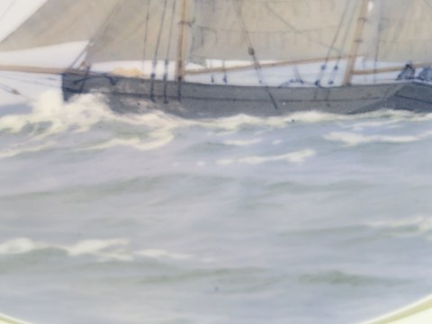 Royal Copenhagen ekstra stor platte med sejlskib på havet.