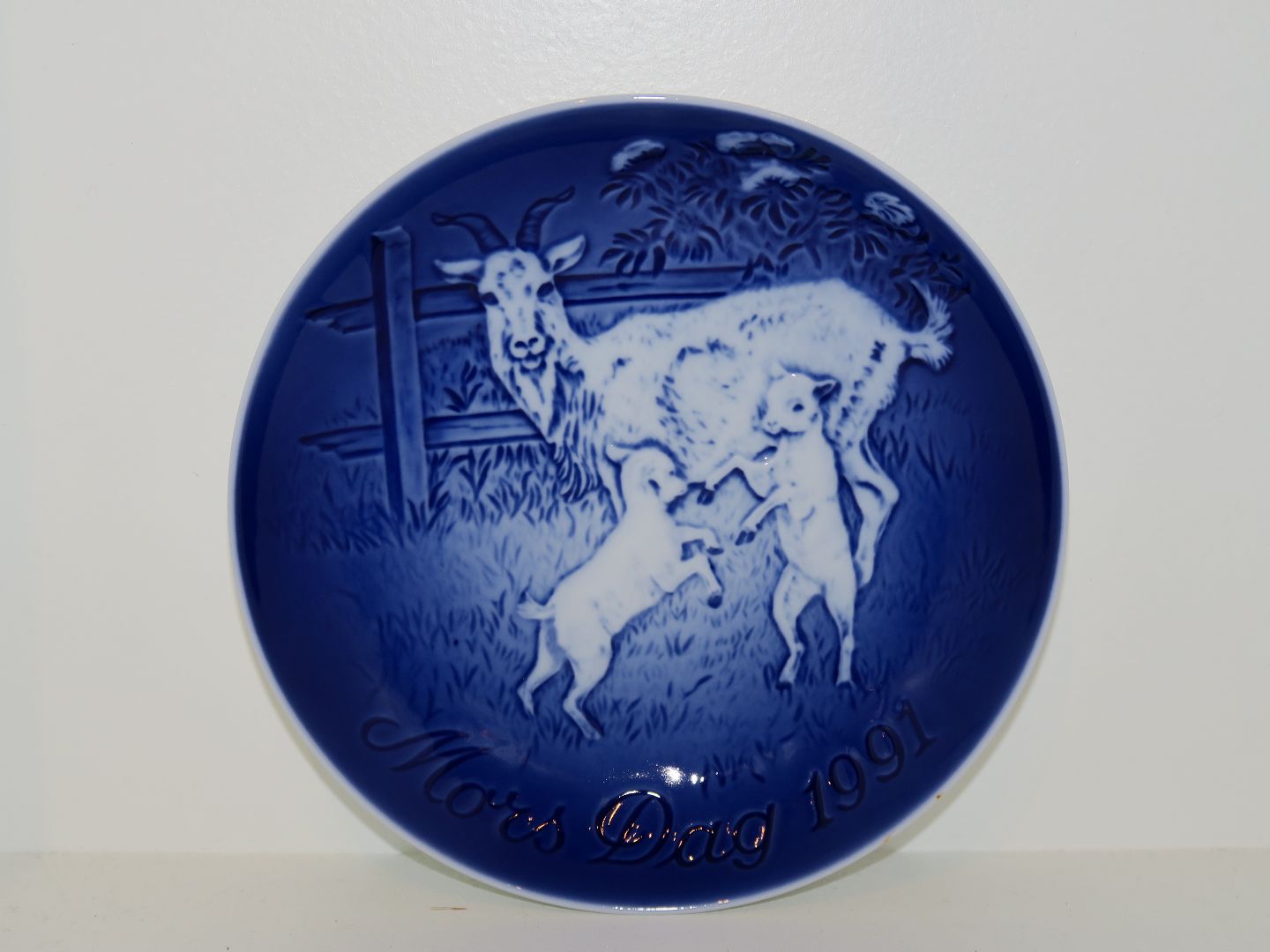 Bing & Grøndahl Mors Dag Platte fra 1991 - Ged med lam. 1. sortering. Diameter 14,8 cm. Perfekt stand uden fejl.