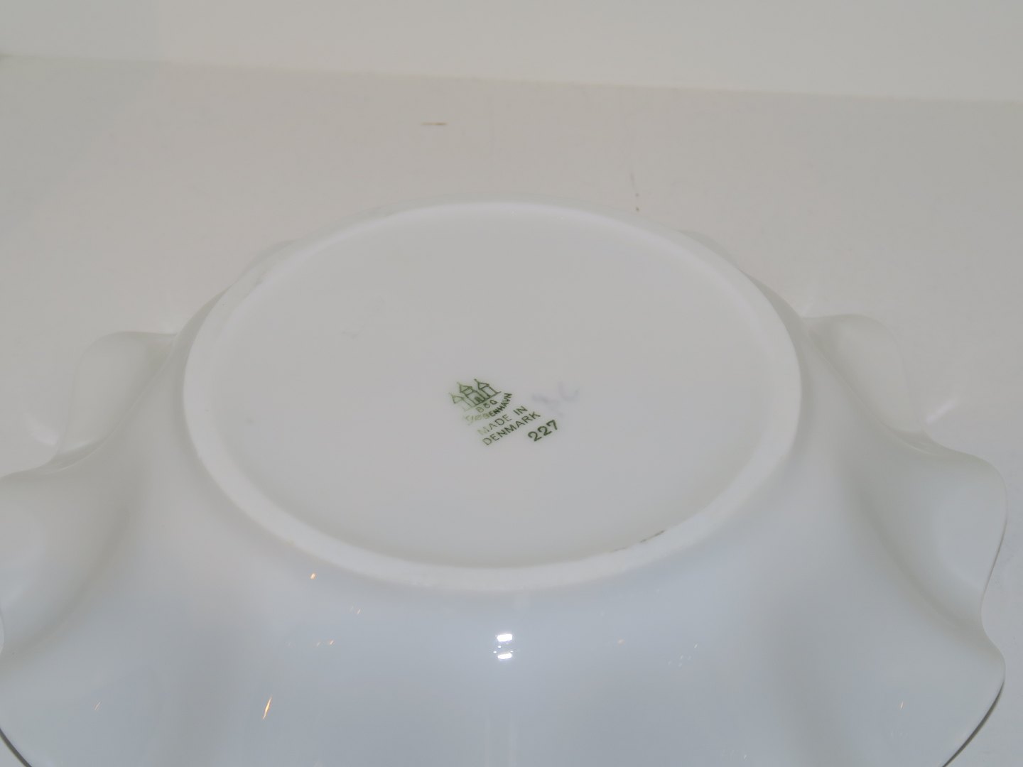 Bing & Grøndahl Måge uden guldkant, bølgeformet skål. Af fabriksmærket kan det udledes, at denne er produceret mellem 1962 og 1970. Dekorationsnummer 227. 2. sortering. Diameter 18.5 cm. Perfekt stand uden fejl.
