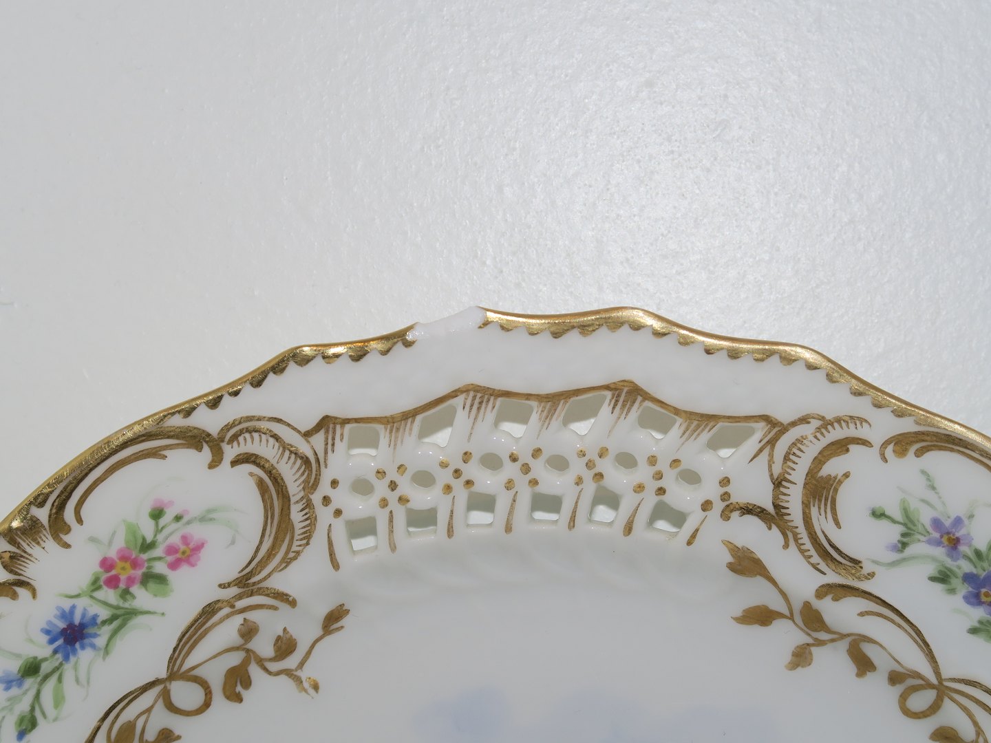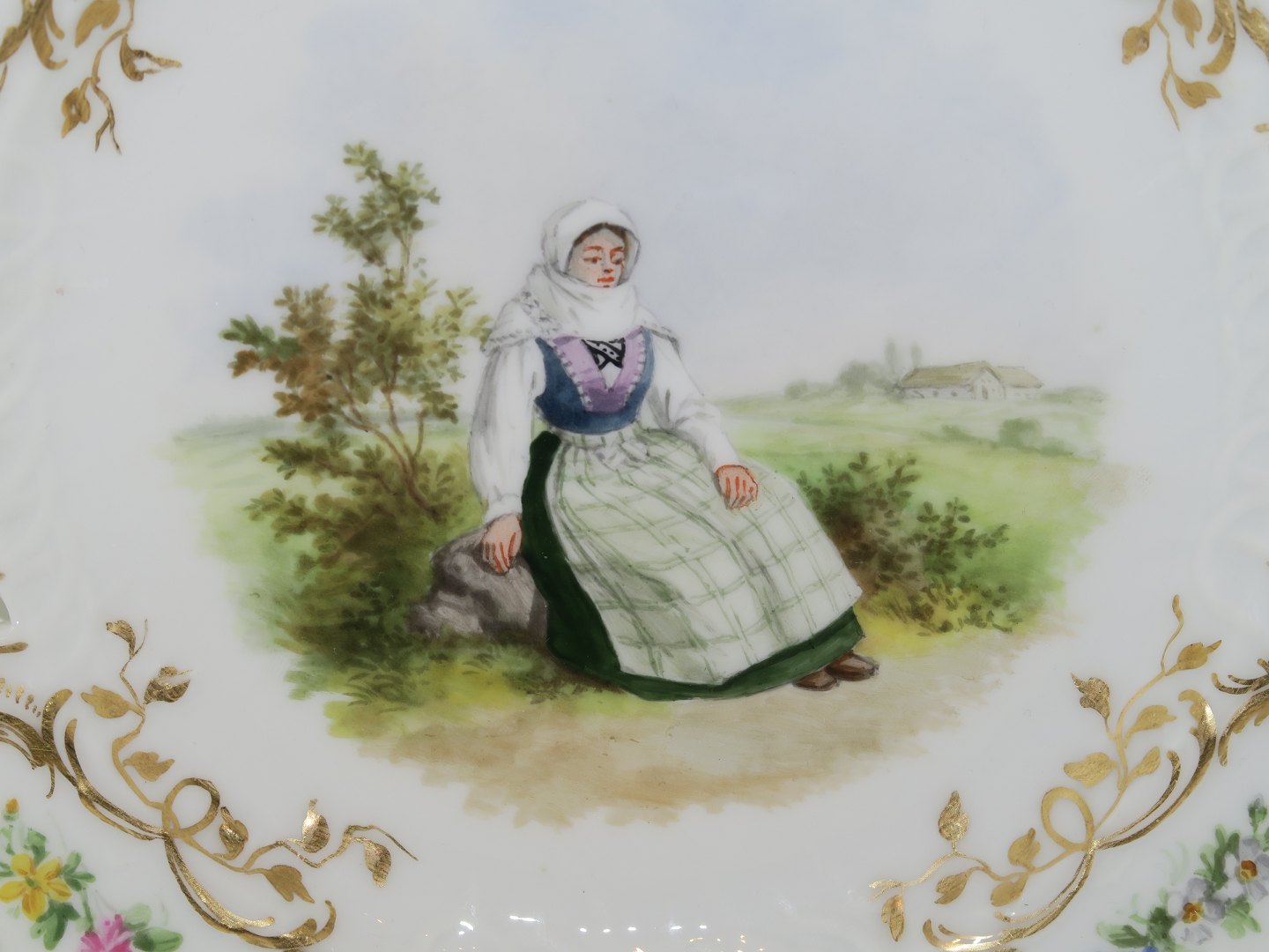 Royal Copenhagen sjælden tallerken med gennembrudt kant. Denne serie er dekoreret i høj kvalitet med danske egnsdragter.