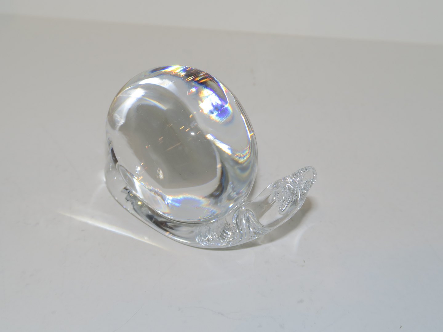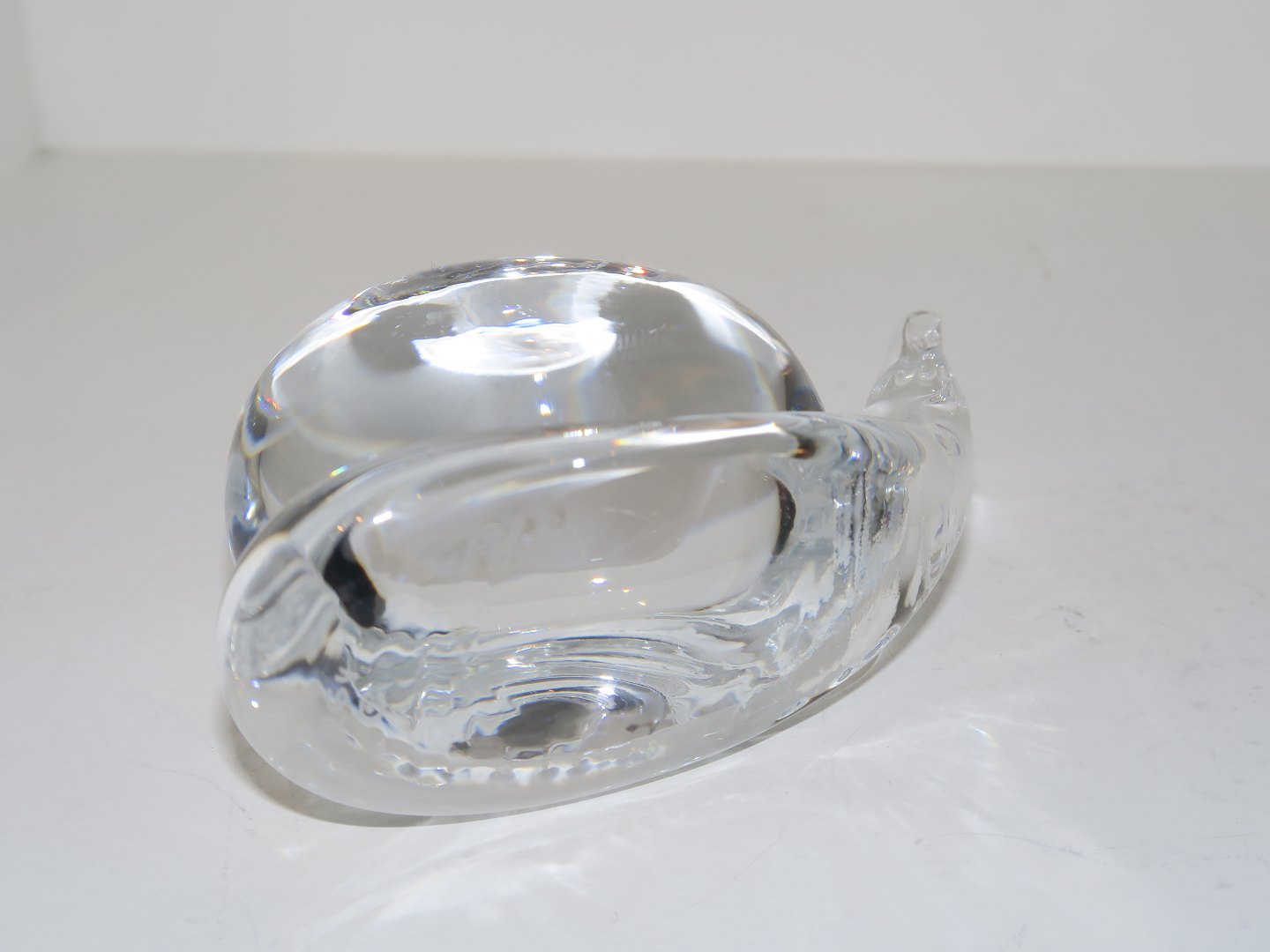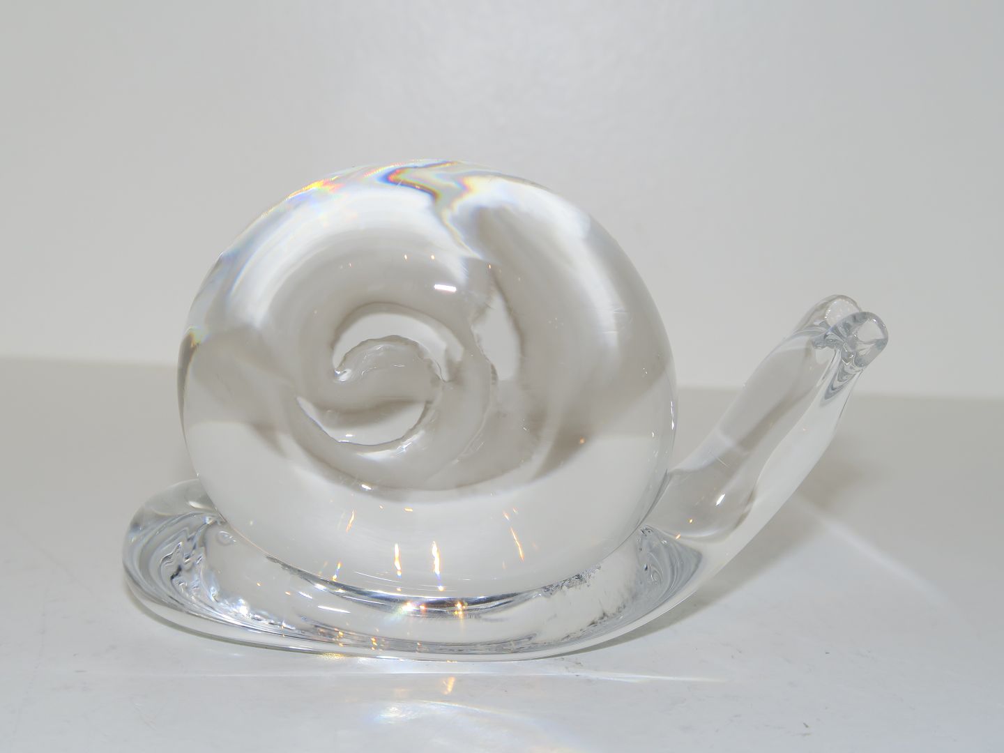 Holmegaard kunstglas, figur af snegl. Designet af Christer Holmgren. Denne er signeret HG6 og er fra 1976. Længde 8,5 cm. Perfekt stand.