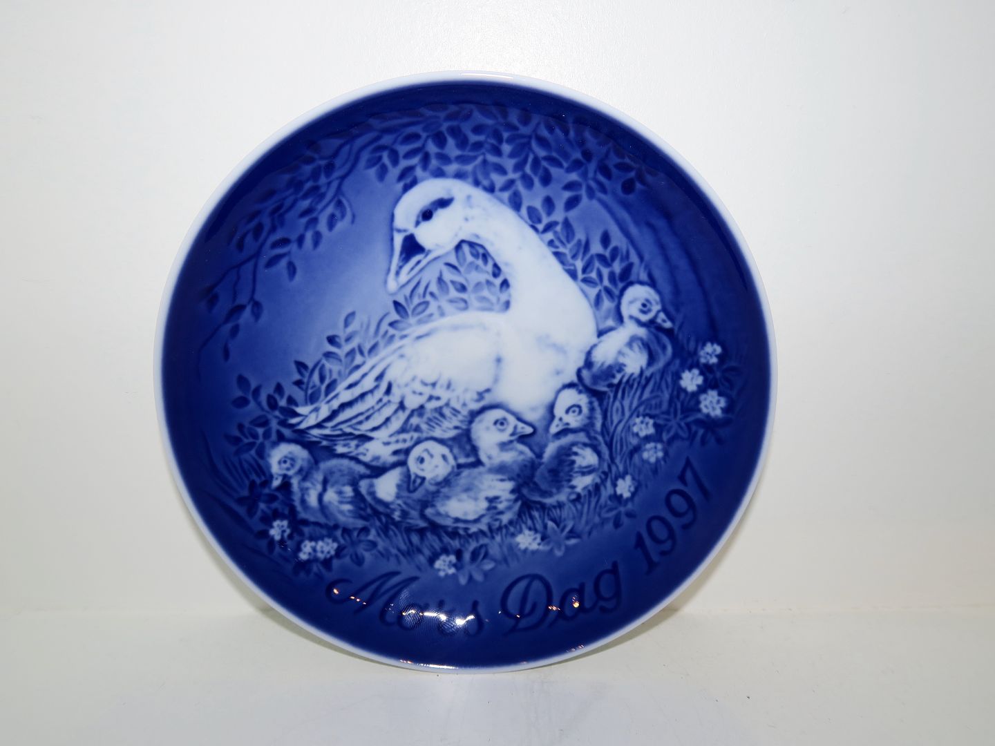 Bing & Grøndahl Mors Dag Platte fra 1997 - Gæs og gæslinger. 1. sortering. Diameter 14,8 cm. Perfekt stand uden fejl.