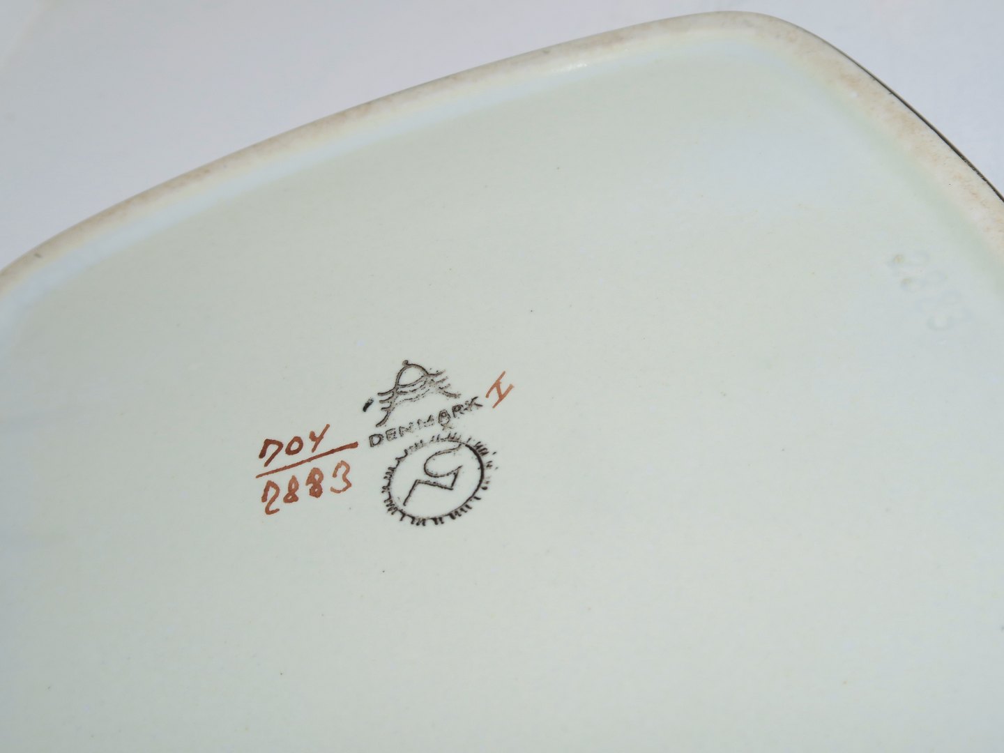 Aluminia - Royal Copenhagen Baca, blå firkantet skål. Designet af Nils Thorsson. Dekorationsnummer 704/2883. 1. sortering. Måler 17,0 x 16,8 cm. Perfekt stand uden fejl.