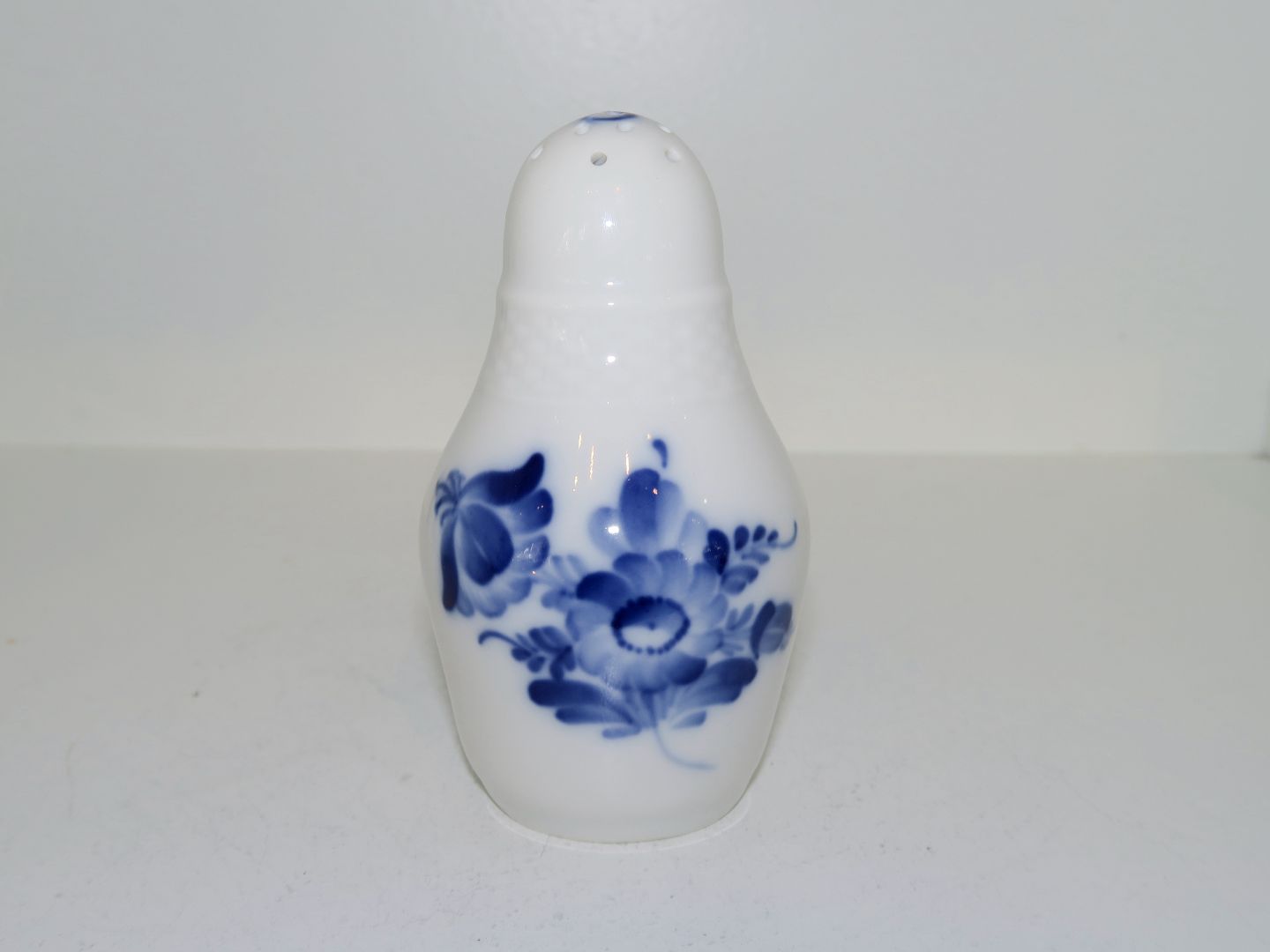 Royal Copenhagen Blå Blomst Flettet, saltbøsse med "S" i toppen.