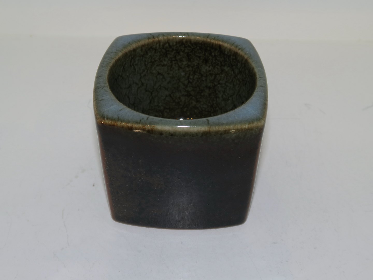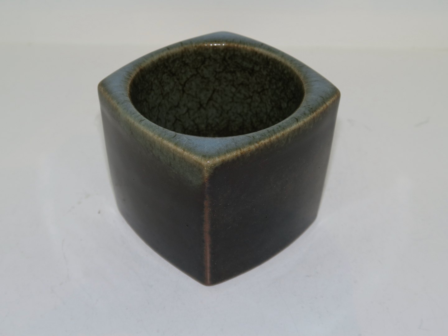 Royal Copenhagen keramik, lille firkantet skål. Designet af Ellen Malmer. Dekorationsnummer 22474. 1. sortering. Højde 7,5 cm., toppen måler 8,6 x 8,6 cm. Perfekt stand uden fejl.