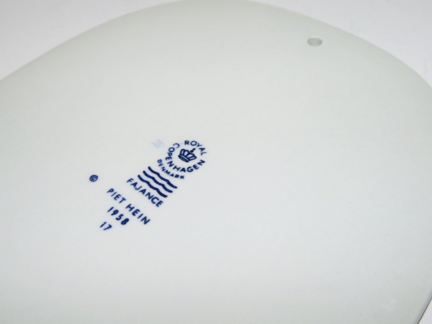 Royal Copenhagen Piet Hein platte med gruk på engelsk.