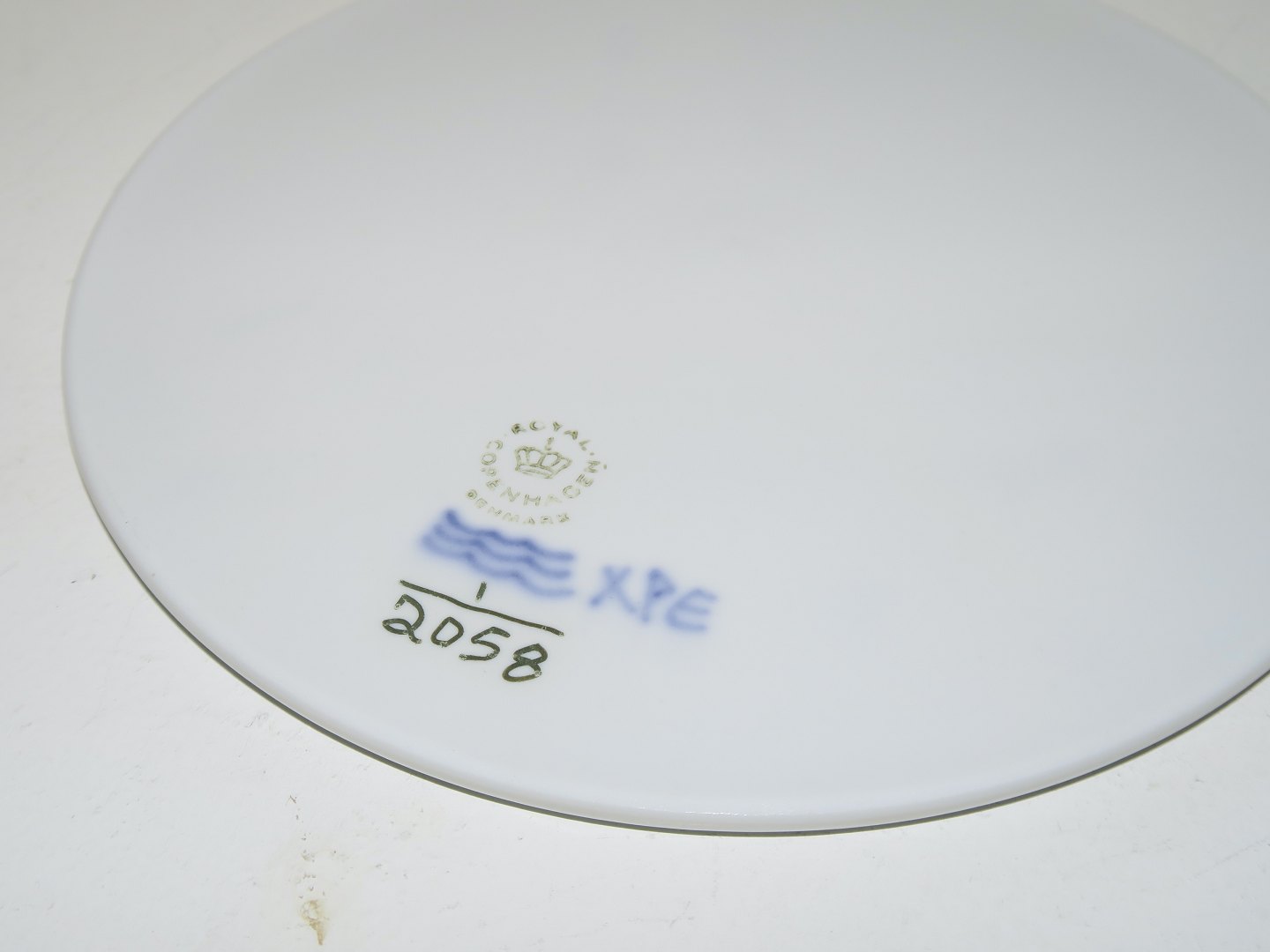 Royal Copenhagen Musselmalet Riflet, sjældent rundt smørbrædt / sættefad. Det er helt fladt og vipper ikke.