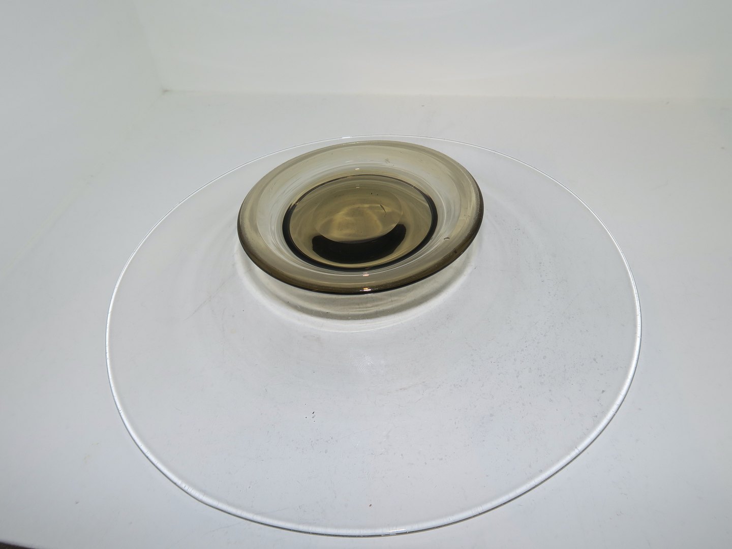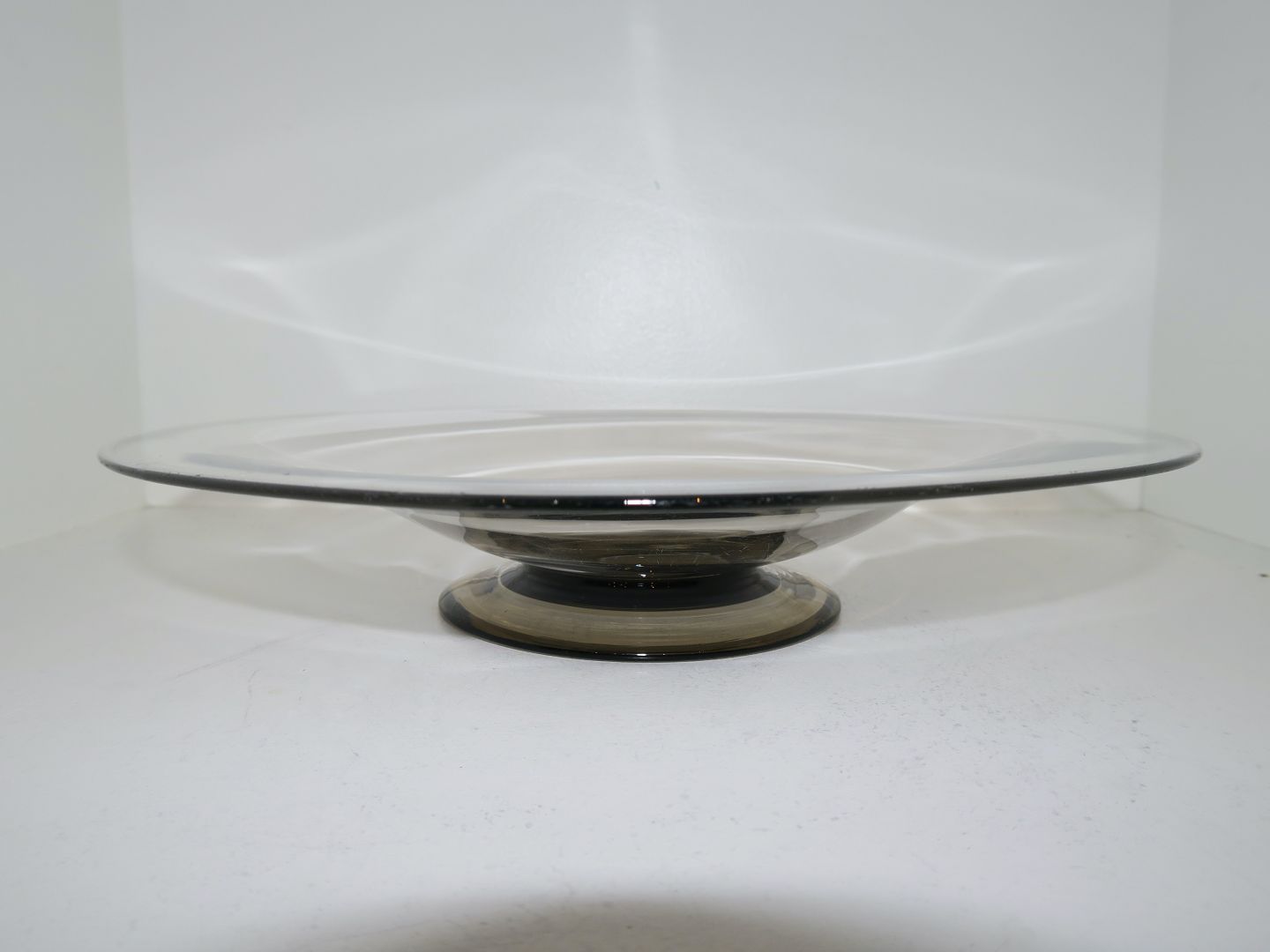 Holmegaard Viol eller Egholm fad på lav fod. Det er udført i klart samt røgfarvet glas. Begge serier er designet af Jacob Bang. Diameter 23,0 cm. Perfekt stand.