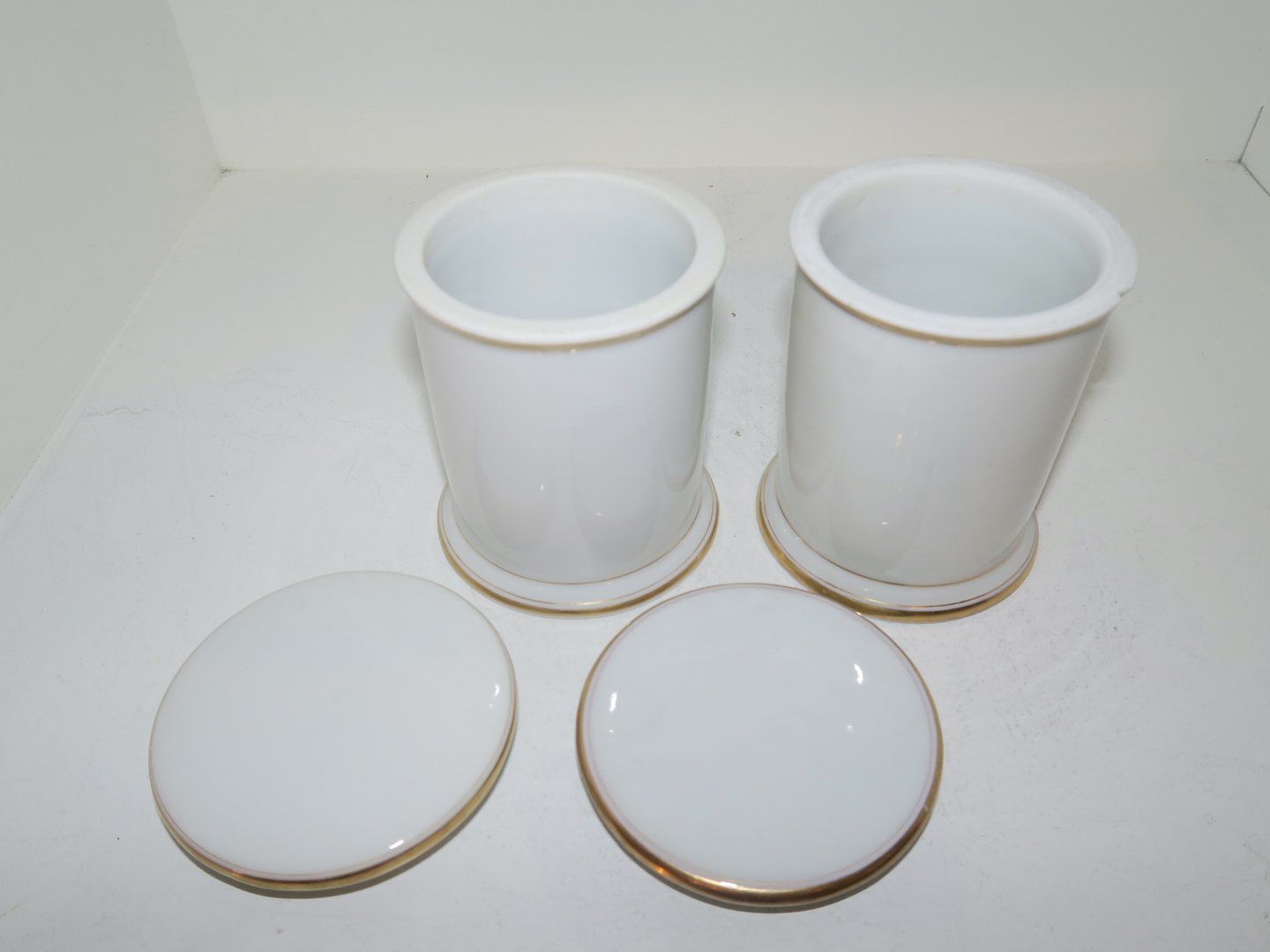 Den ene har et skår på topkanten, se foto ellers perfekt stand uden fejl.