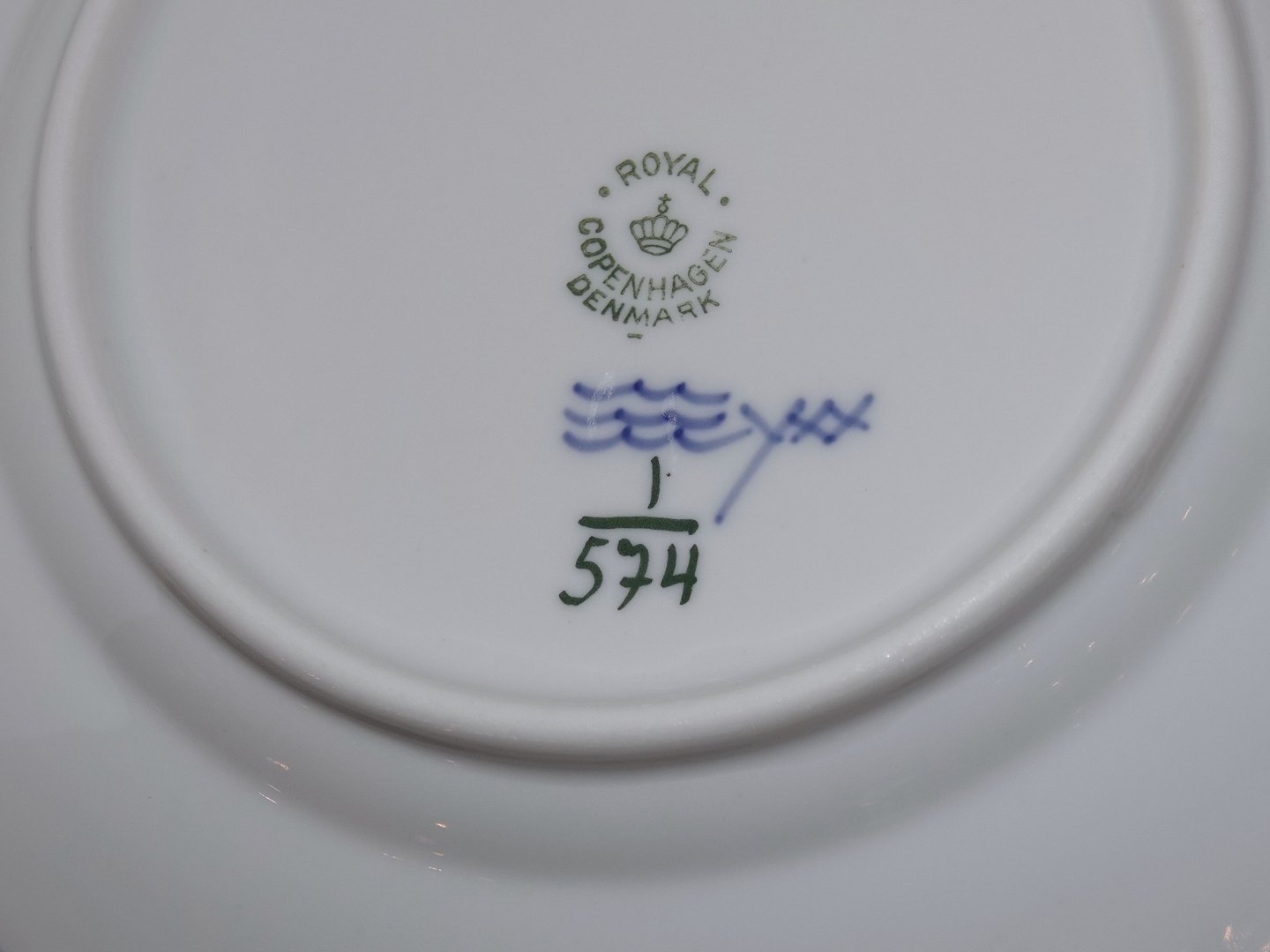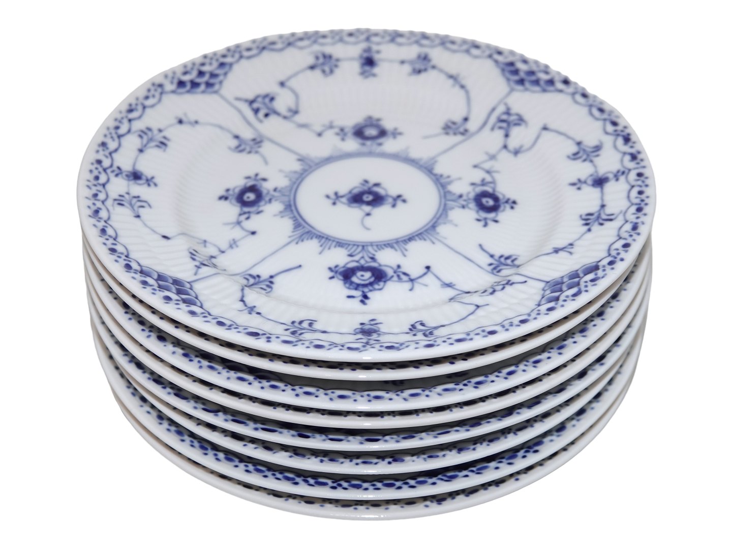 Royal Copenhagen Musselmalet Halvblonde, stor desserttallerken. Dekorationsnummer 1/574. 2. sortering. Diameter 17,0 cm. Perfekt stand uden fejl.