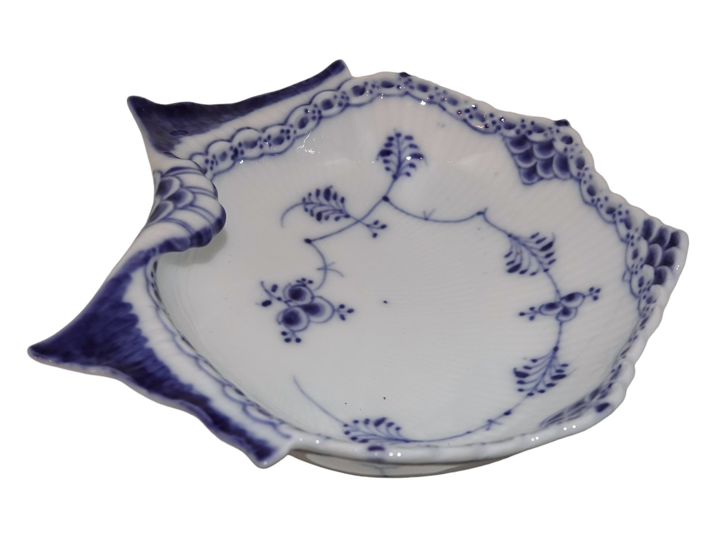 Royal Copenhagen Musselmalet Halvblonde, kageskål. Fabriksmærket viser, at denne er produceret i 1963. Dekorationsnummer 1/557. 1. sortering. Måler 19,0 x 18,5 cm. Perfekt stand uden fejl.