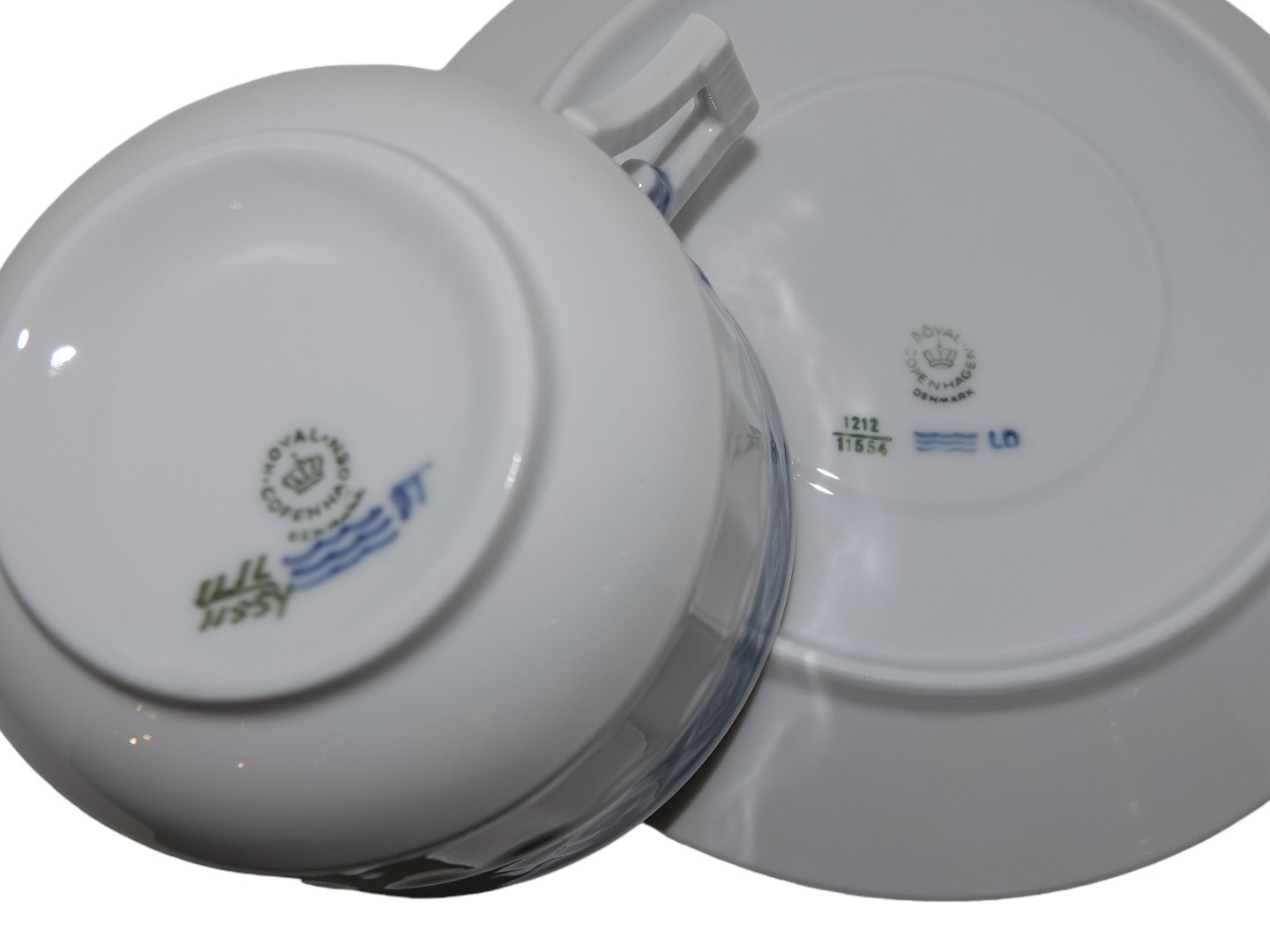 Royal Copenhagen Blå Vifte, ekstra stor morgenkop / chokoladekop med tilhørende underkop. Dekorationsnummer 1212/11554. 1. sortering. Koppens diameter er 9,9 cm. Perfekt stand uden fejl.