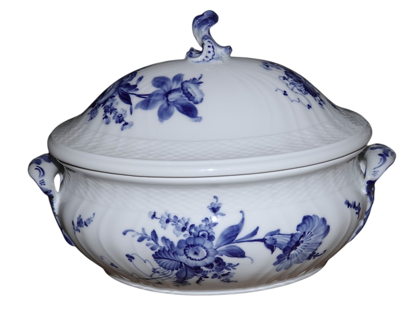 Royal Copenhagen Blå Blomst Svejfet, stor suppeterrin. Dekorationsnummer 10/1667. Denne er produceret i 1937. 1. sortering. Længde 33,5 cm. Perfekt stand uden fejl.