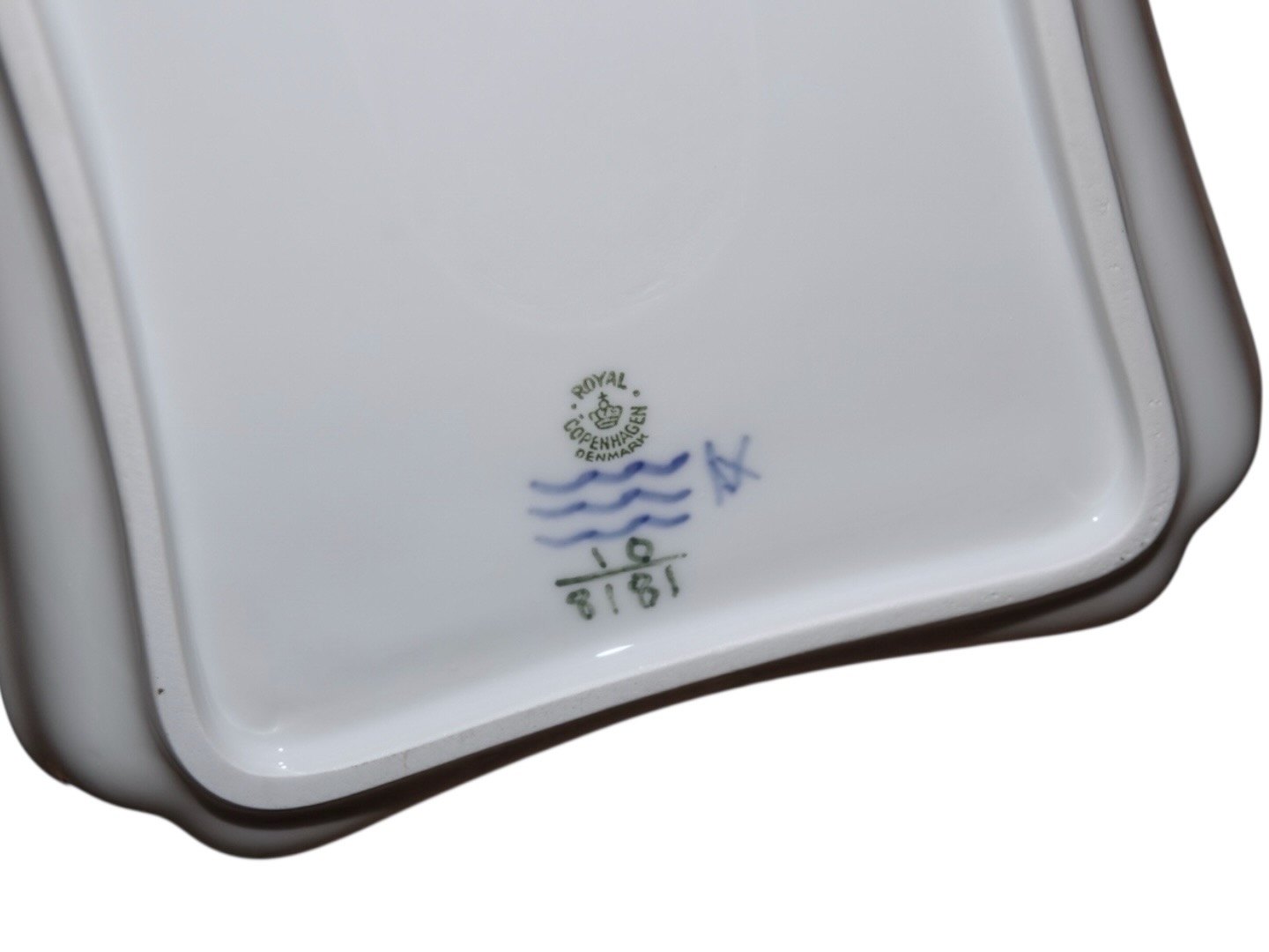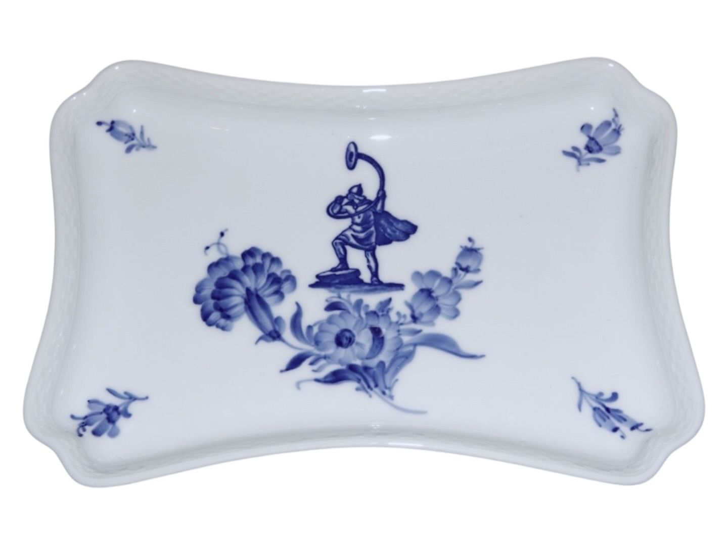 'Royal Copenhagen Blå Blomst Flettet med Lurblæser, firkantet bakke. Dekorationsnummer 10/8181. 1. sortering. Længde 23,9 cm. Perfekt stand uden fejl.