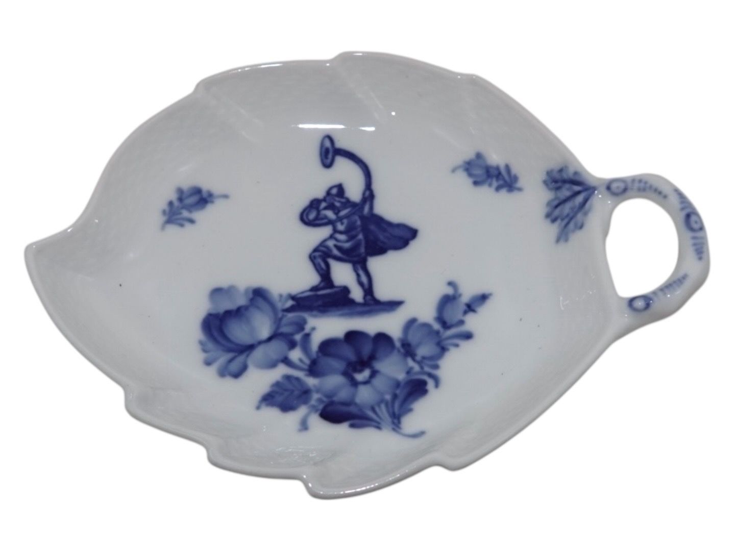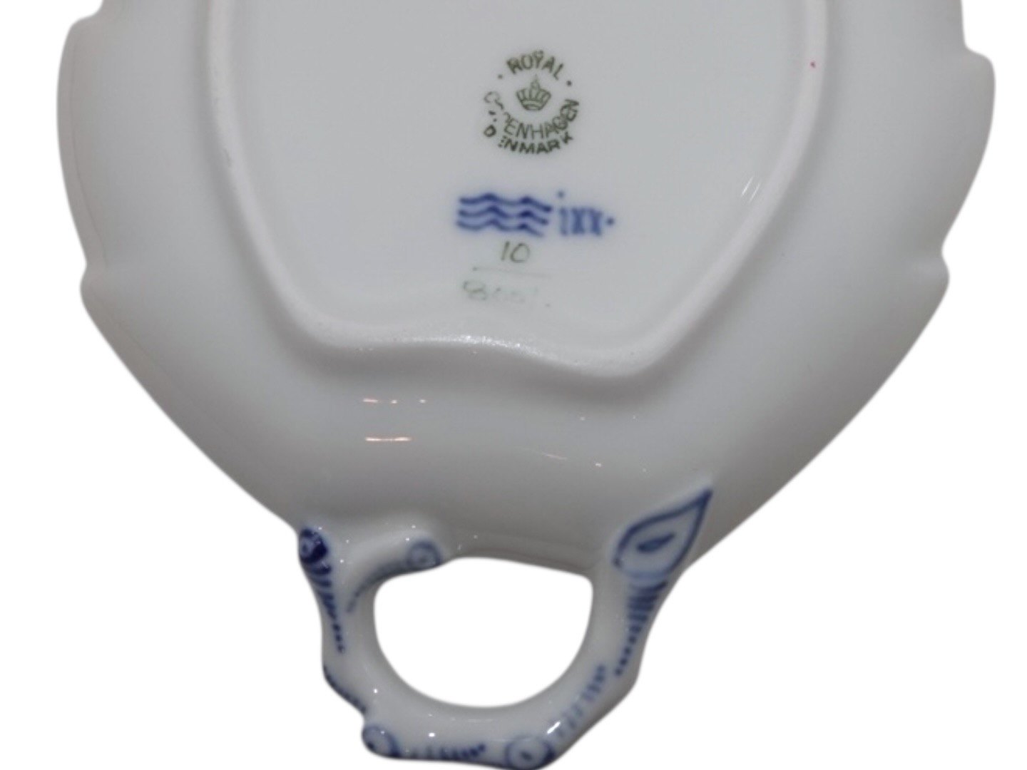 'Royal Copenhagen Blå Blomst Flettet med Lurblæser, lille kageasiet med hank. Dekorationsnummer 10/8001. 1. sortering. Længde 18,5 cm. Perfekt stand uden fejl.