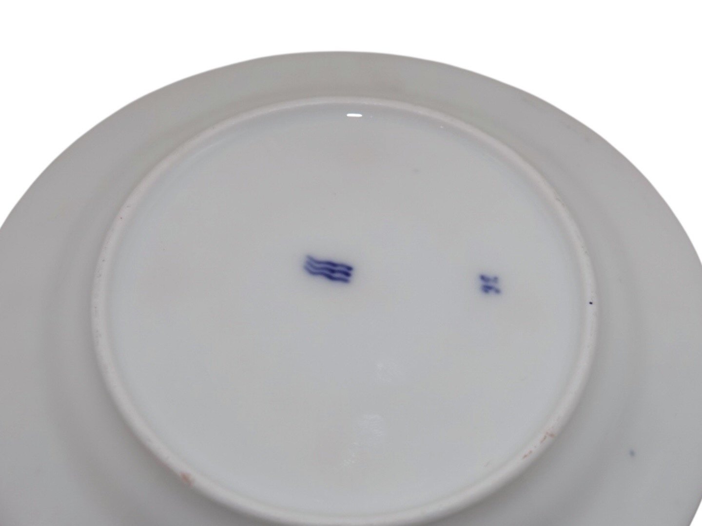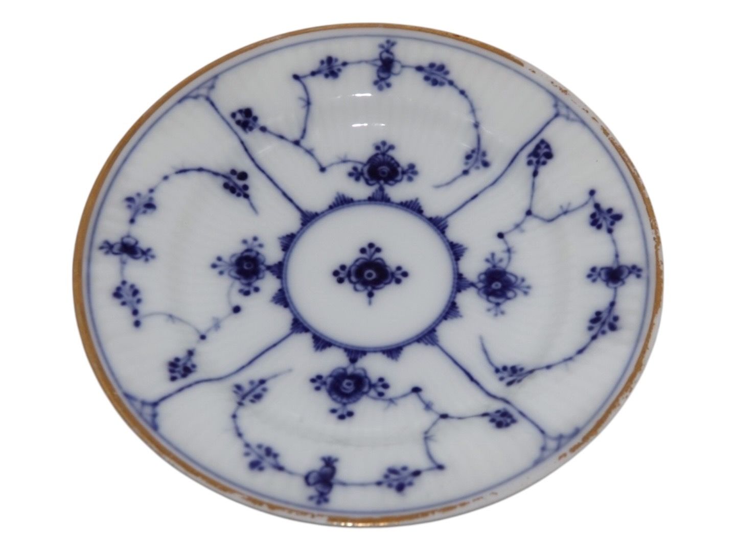 Royal Musselmalet Riflet med guldkant, lille brødtallerken. Denne er produceret før 1894. 1. sortering. Diameter 14,0 cm. Guldkanten er meget slidt, se foto, ellers velholdt stand uden fejl.