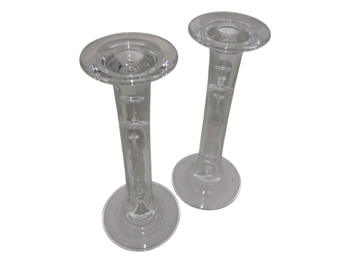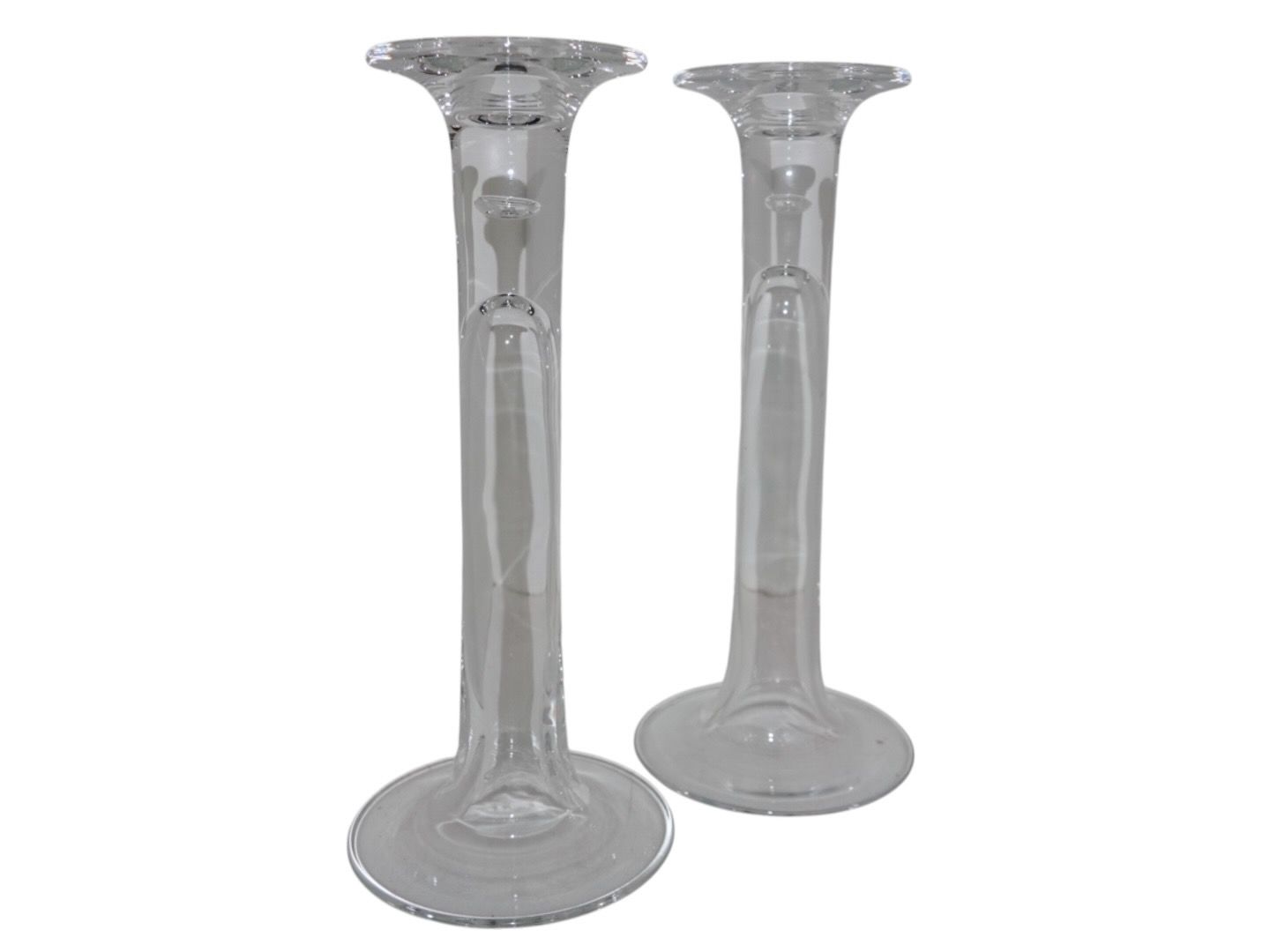 Holmegaard Merkur lysestage i klart glas med en luftbobbel i stilken.