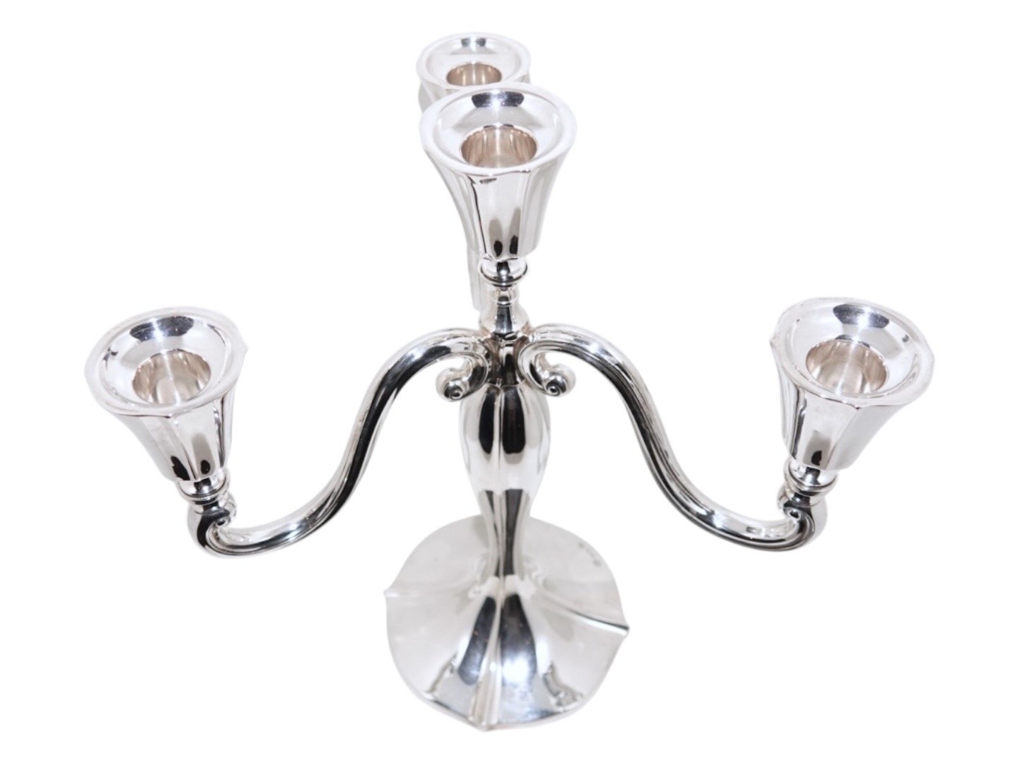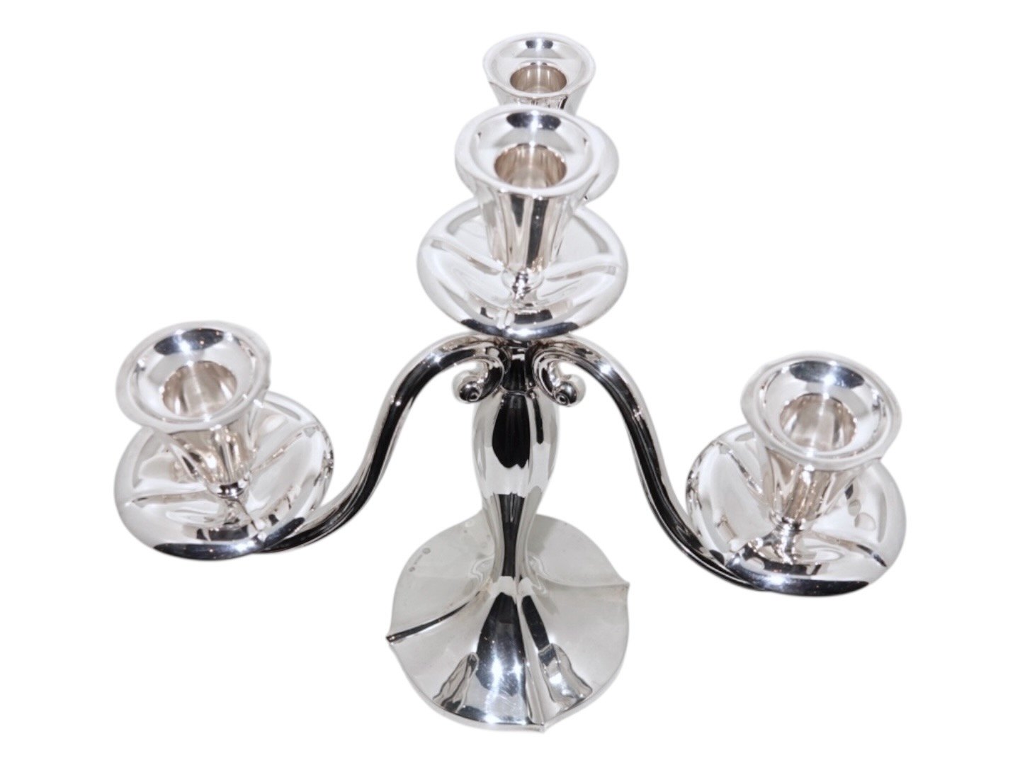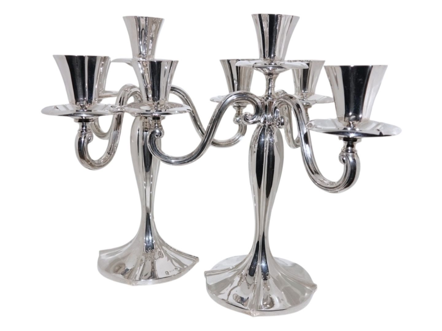 Dansk tretårnet sølv, par fire-armede kandelabre.