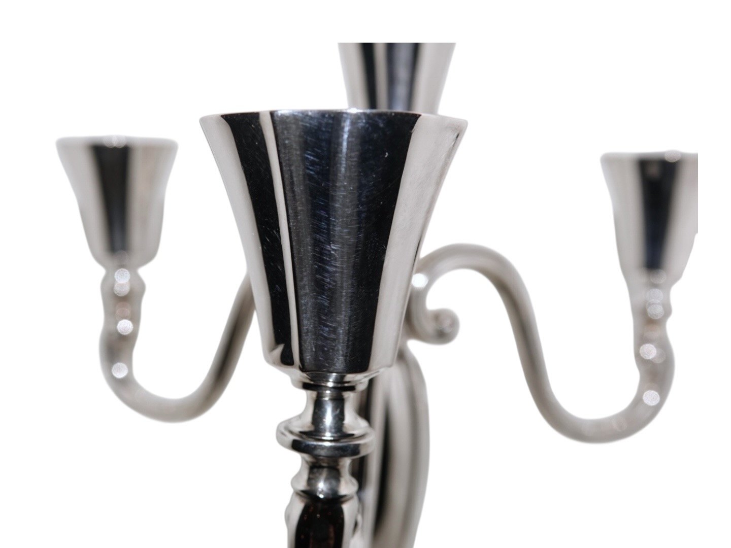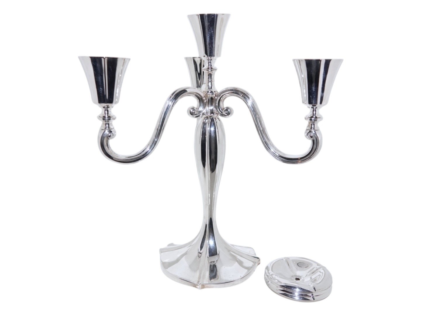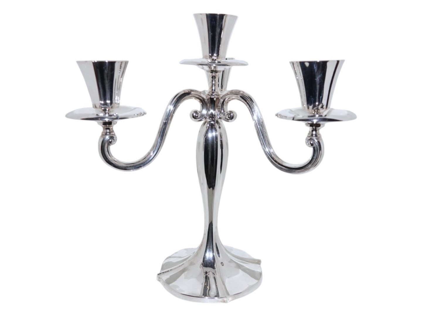 Dansk tretårnet sølv, par fire-armede kandelabre.