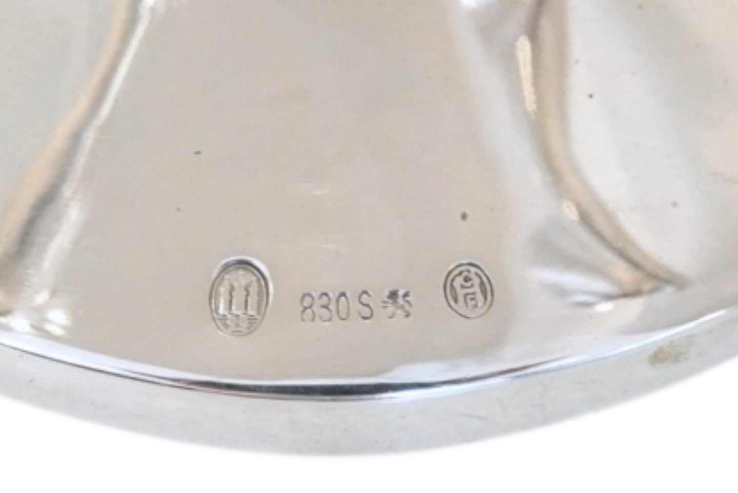 Stemplet med ukendt mestermærke, "830S" samt de Tre Tårne og 29 for årstallet 1929. Alle lyspiber og lysmanchetter er også stemplet med de Tre Tårne.