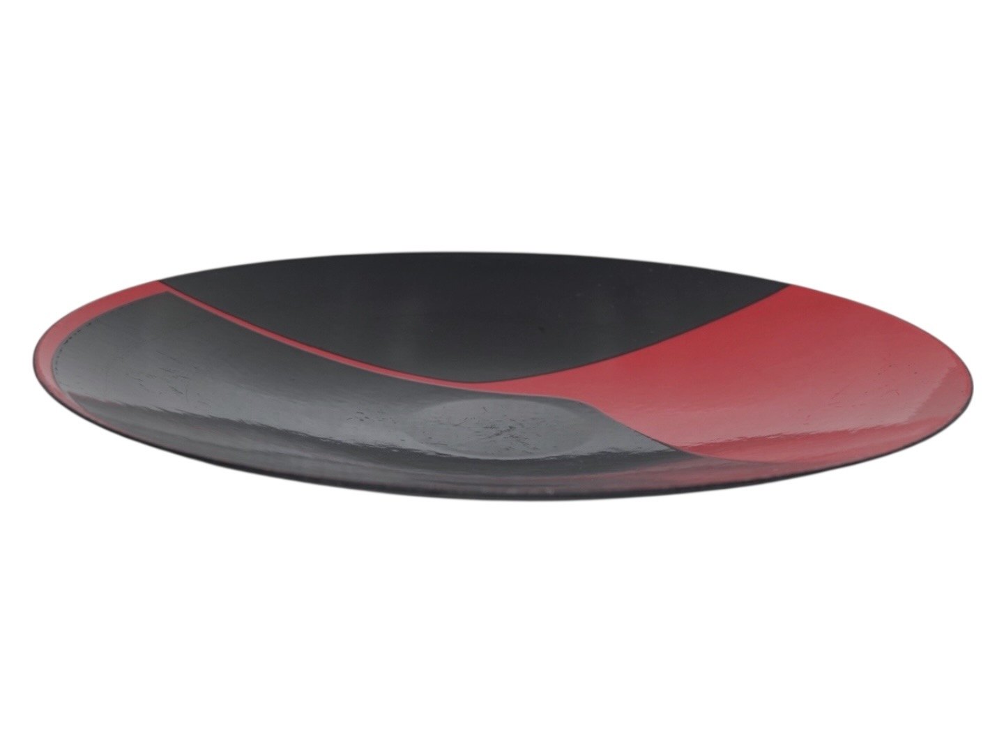 Stort emaljefad med sort og rød dekoration