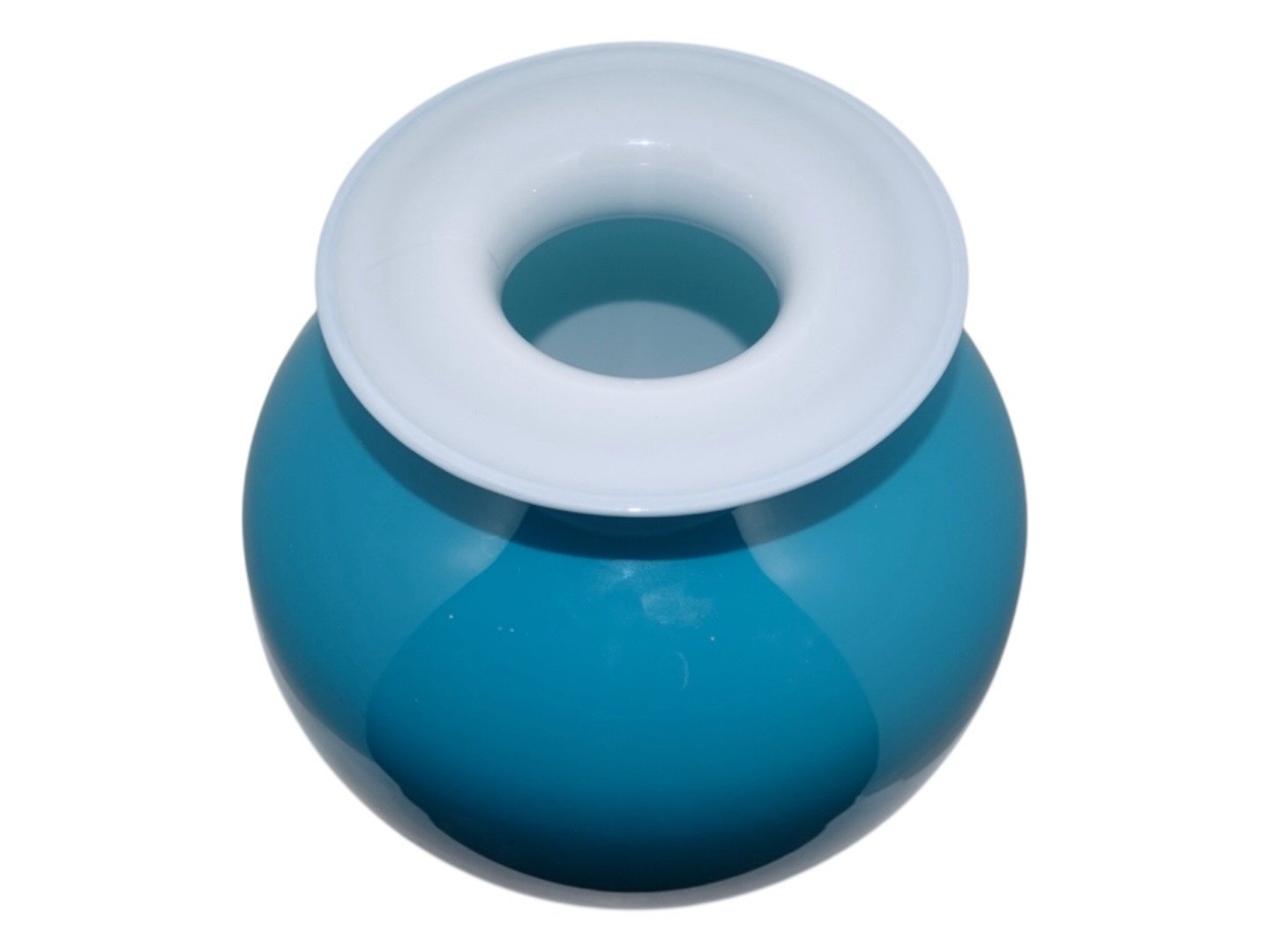 Holmegaard Carnaby, stor rund blå vase - muligvis en prøvemodel fra Holmegaard, da vi ikke har set denne model og størrelse før.