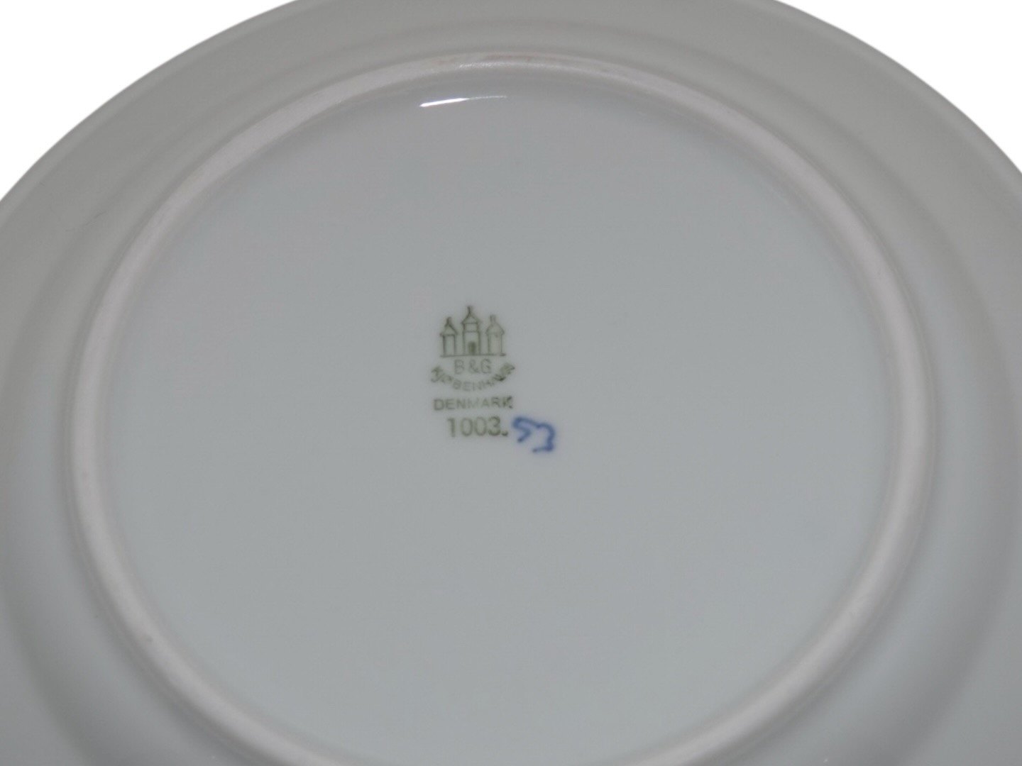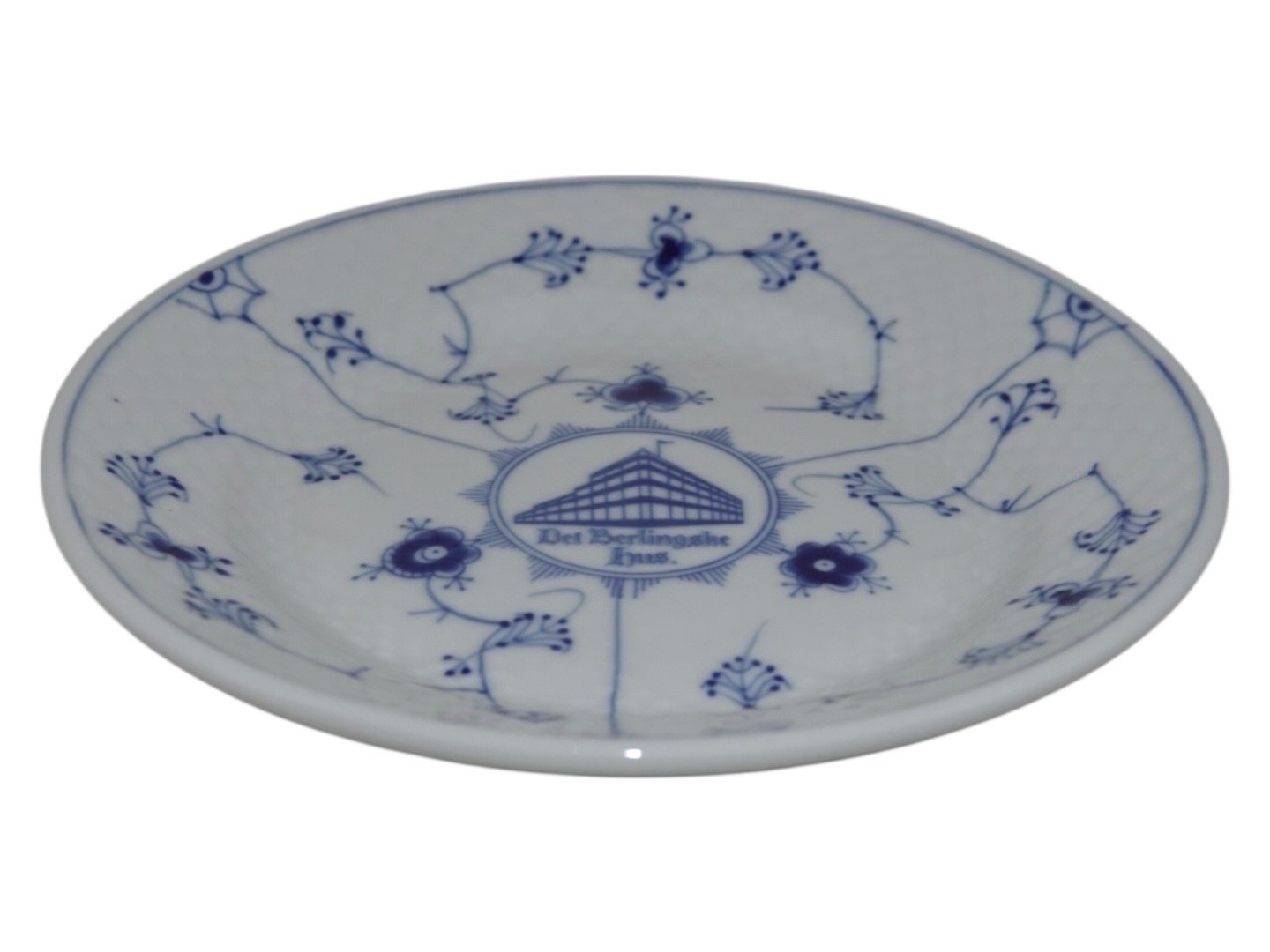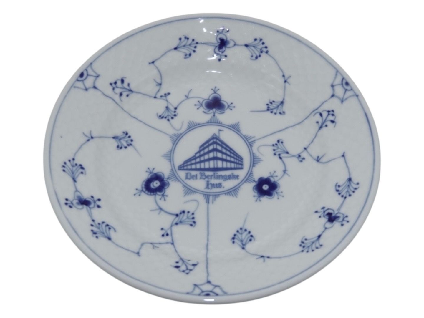 Bing & Grøndahl Musselmalet (Blåmalet) hotelporcelæn / jernporcelæn (ekstra tykt porcelæn), stor kagetallerken med logo fra "Det Berlingske Hus".
