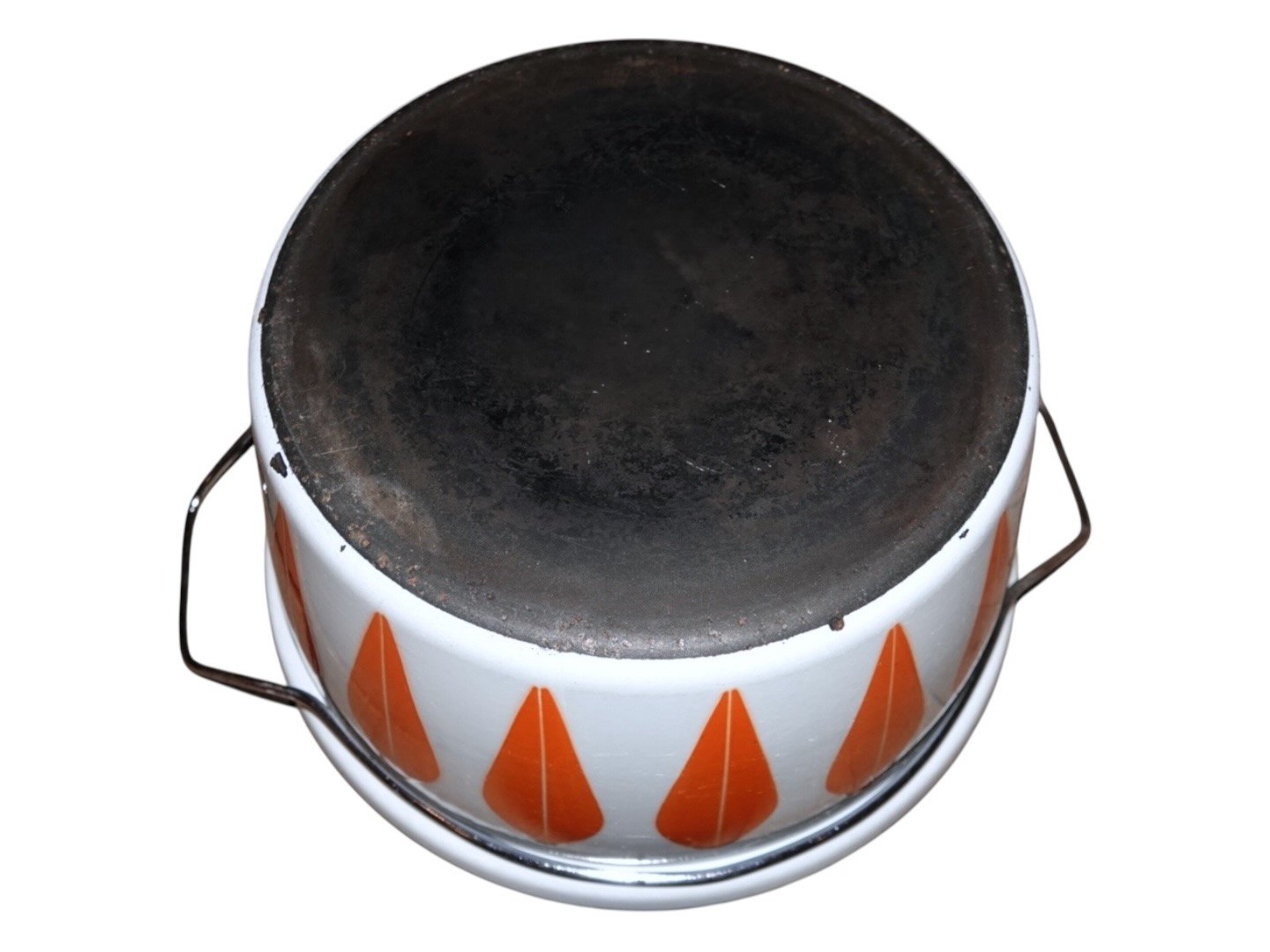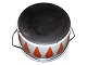 Ekstra stor orange Lotus Gryde med låg fra Cathrineholm i Norge. Diameter 32,2 cm. uden hanke. Der er en del brugsspor inden i ellers fin stand.