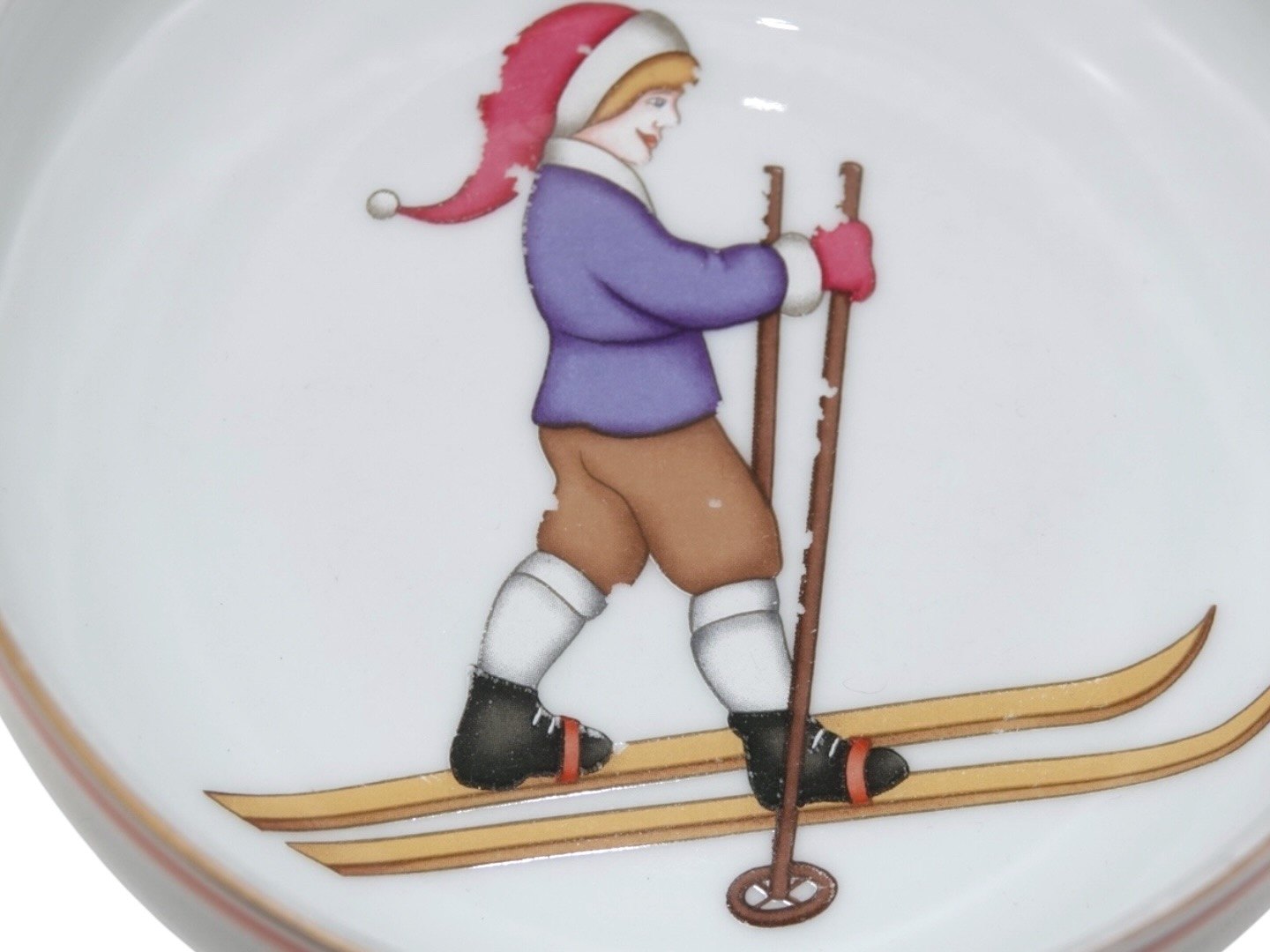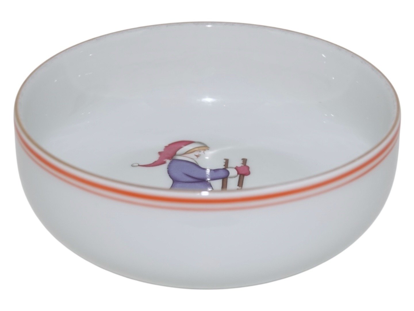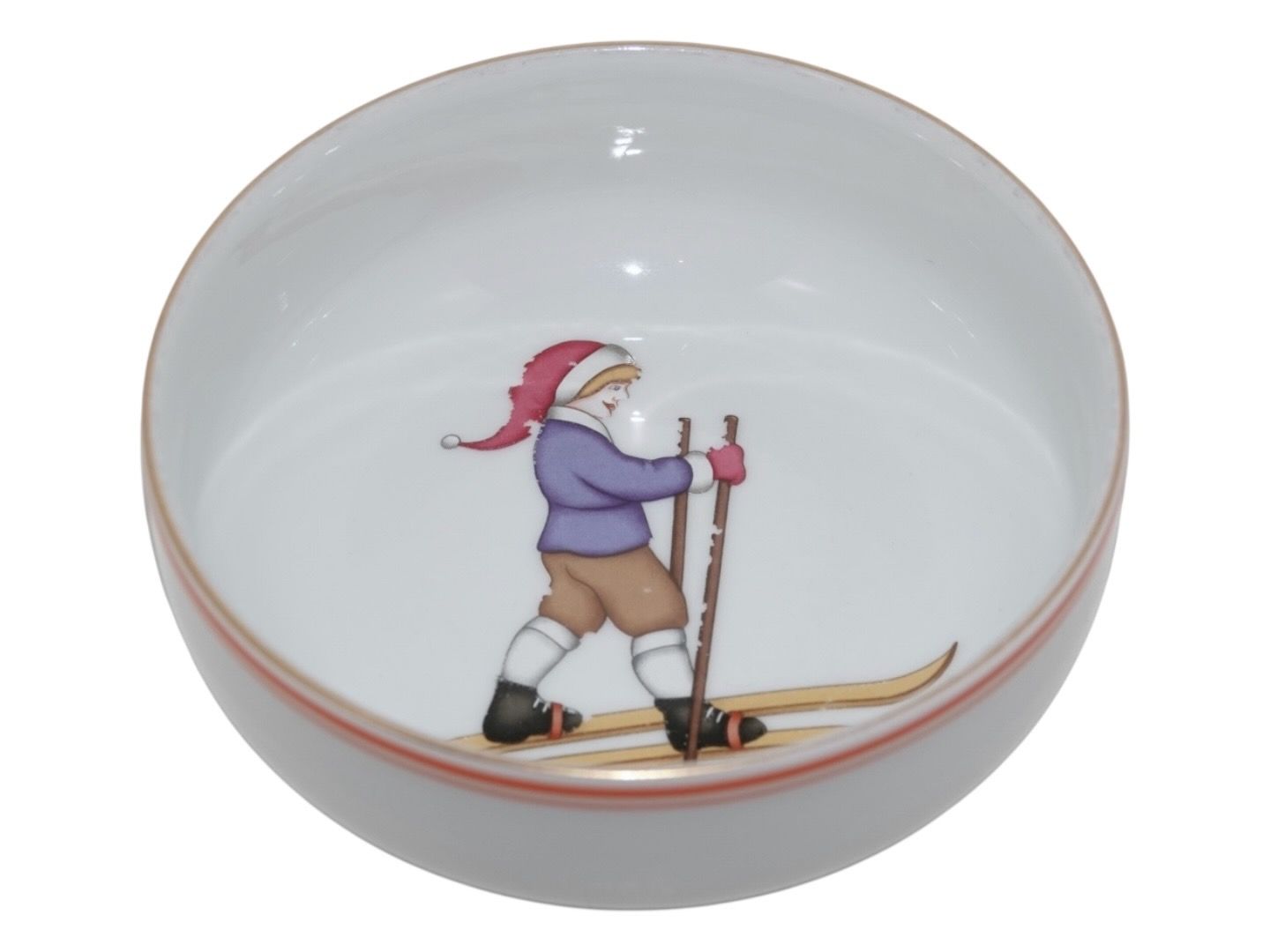 Bing & Grøndahl Julestel, grødskål / ymerskål dekoreret med dreng med nissehue på ski