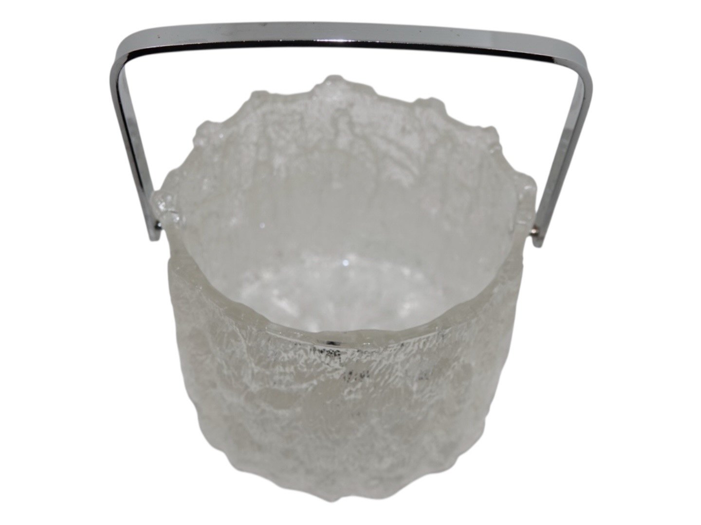Iittala Finland, isspand i kraftigt glas med stålhank. Designet af Tapio Wirkkala i 1970'erne. Højde 11,0 cm. uden hank, diameter 13,5 cm. Flot og velholdt stand uden fejl.