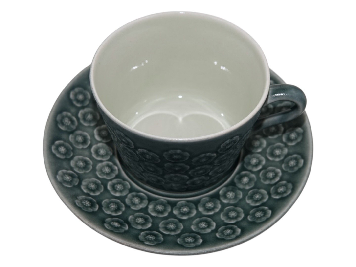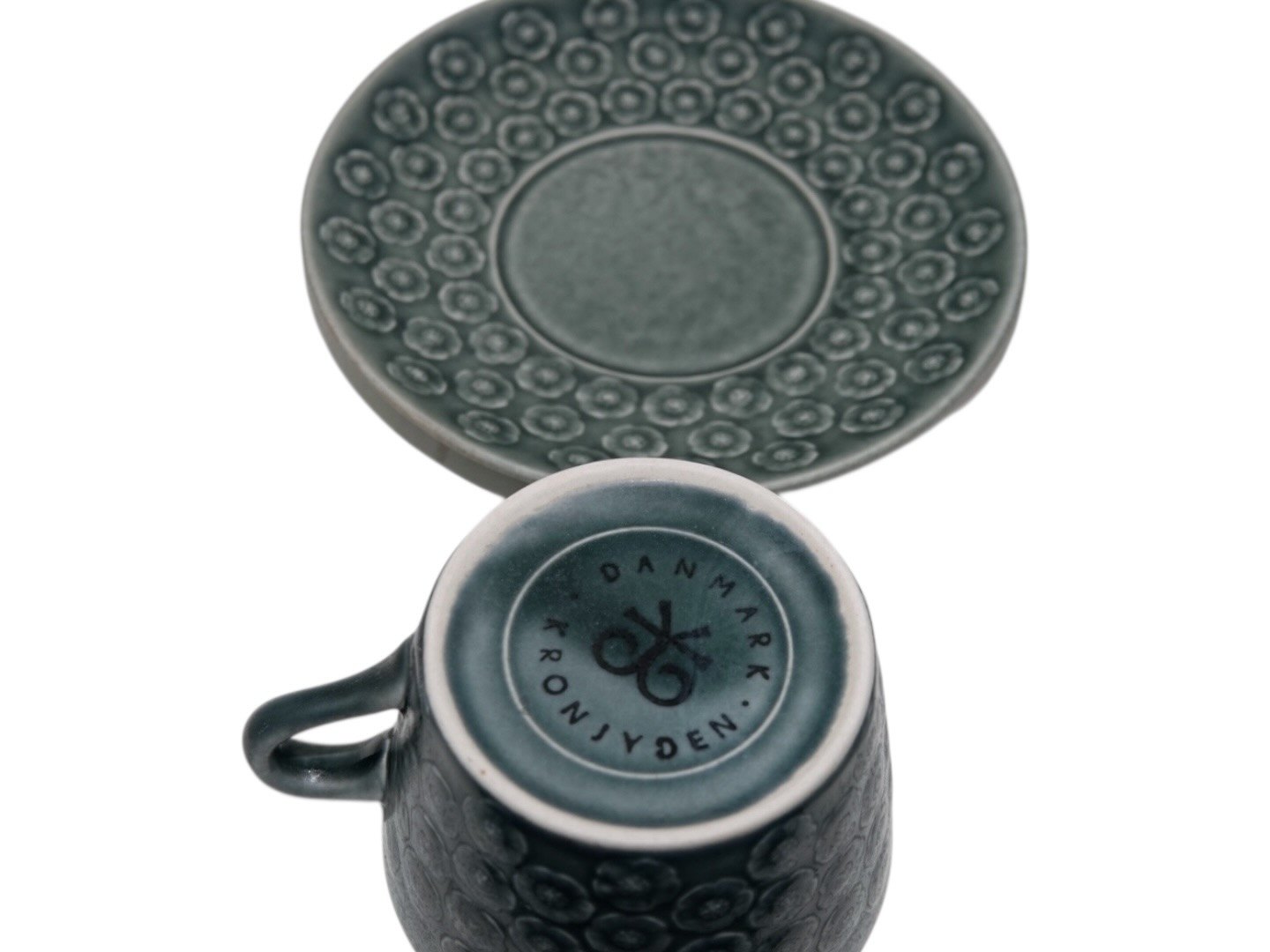 Kronjyden, Azur stentøj, kop med tilhørende underkop. Designet af Jens Harald Quistgaard. Diameter of the cup is 8.7 cm. Perfekt stand uden fejl.