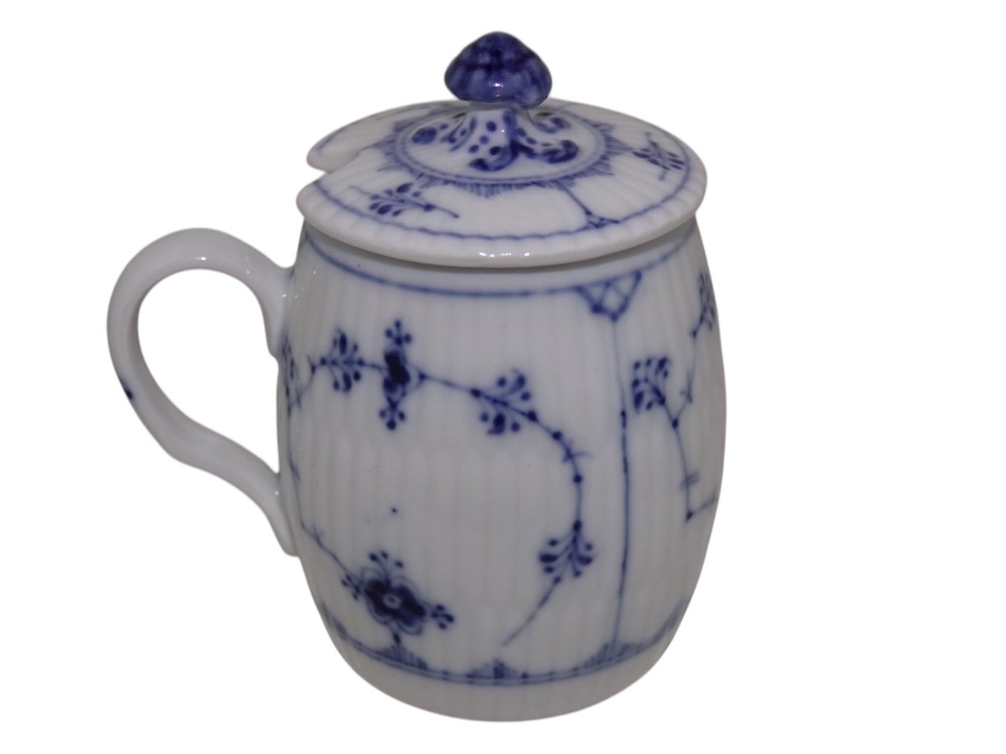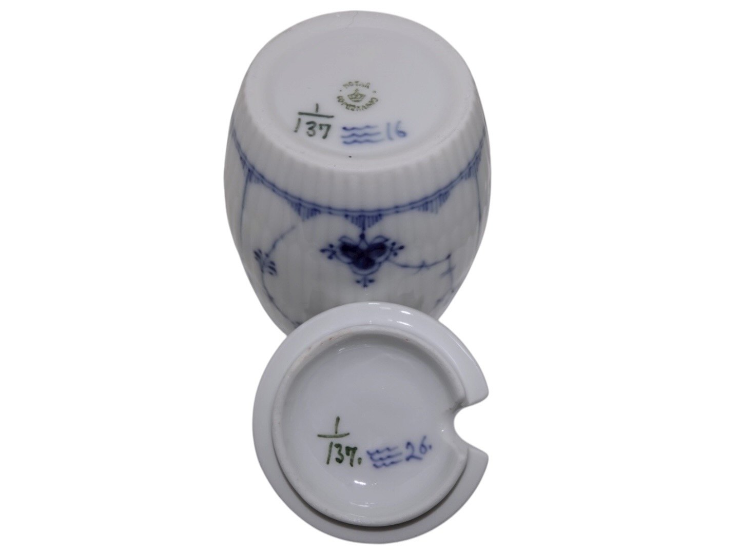 Royal Copenhagen Musselmalet Riflet, sennepskrukke med låg.