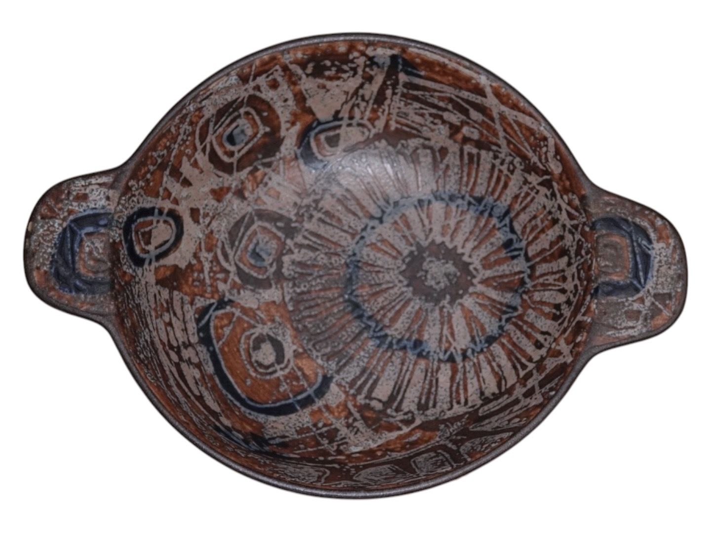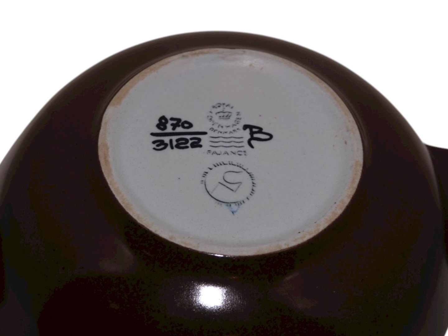 Royal Copenhagen Fajance Baca, skål med håndtag. Designet og signeret af Nils Thorsson. Dekorationsnummer 780/3122. 1. sortering. Diameter 15,8 cm., længde 21,0 cm. Perfekt stand uden fejl.