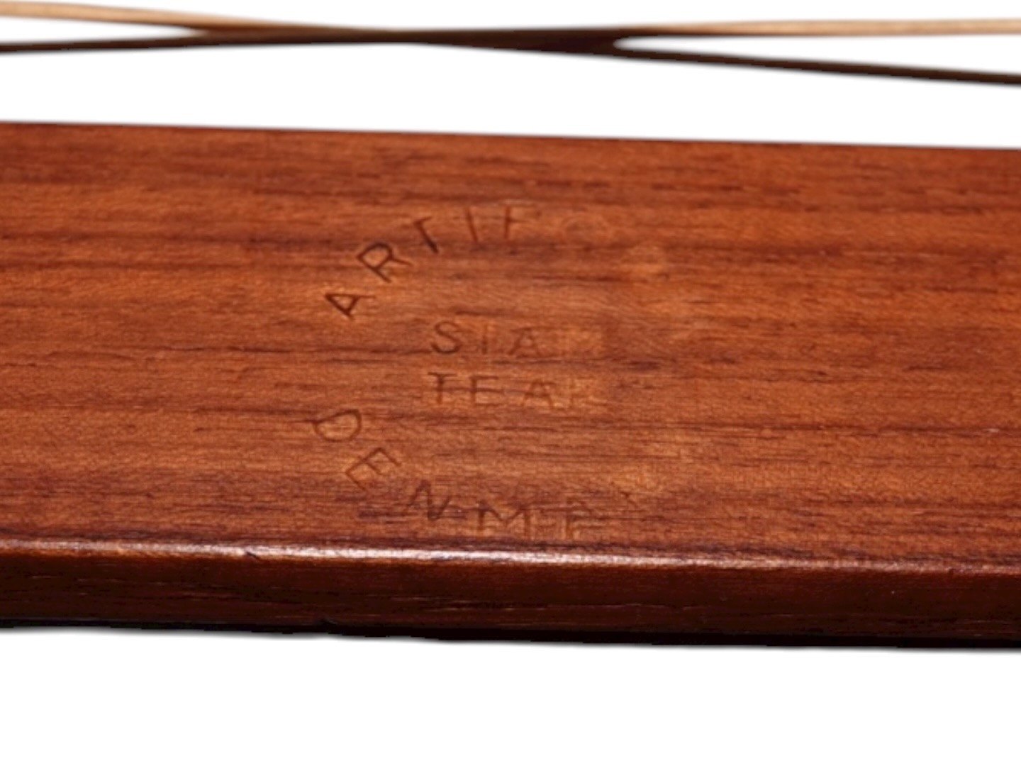 Artiform Denmark, Siam teaktræ bakke med messingfødder samt snørrer. Det er udført i en flot kvalitet. Stemplet "ARTIFORM SIAM TEAK DENMARK". Måler 29,5 x 23,0 cm. Flot og velholdt stand.