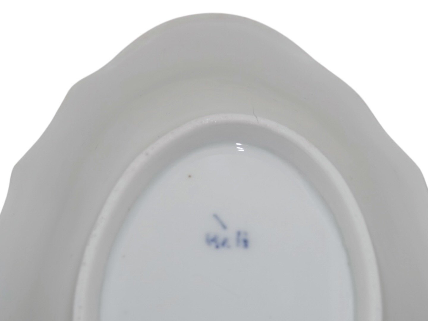 Bing & Grøndahl Blåmalet Riflet / Musselmalet Riflet, sjælden oval skål med bølget kant.