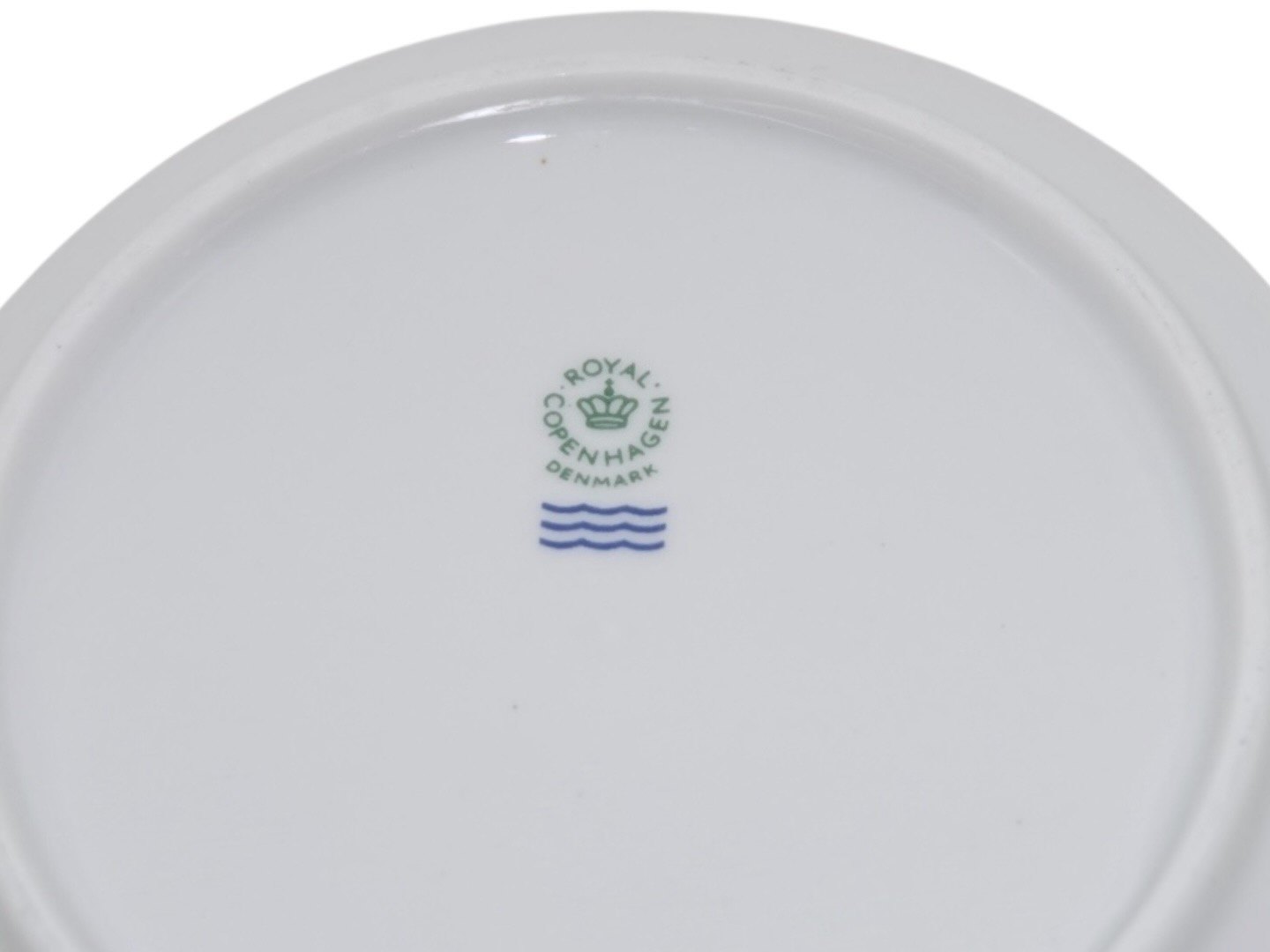 Royal Copenhagen julestel, lille asiet med julenisse, risengrød og kat.
