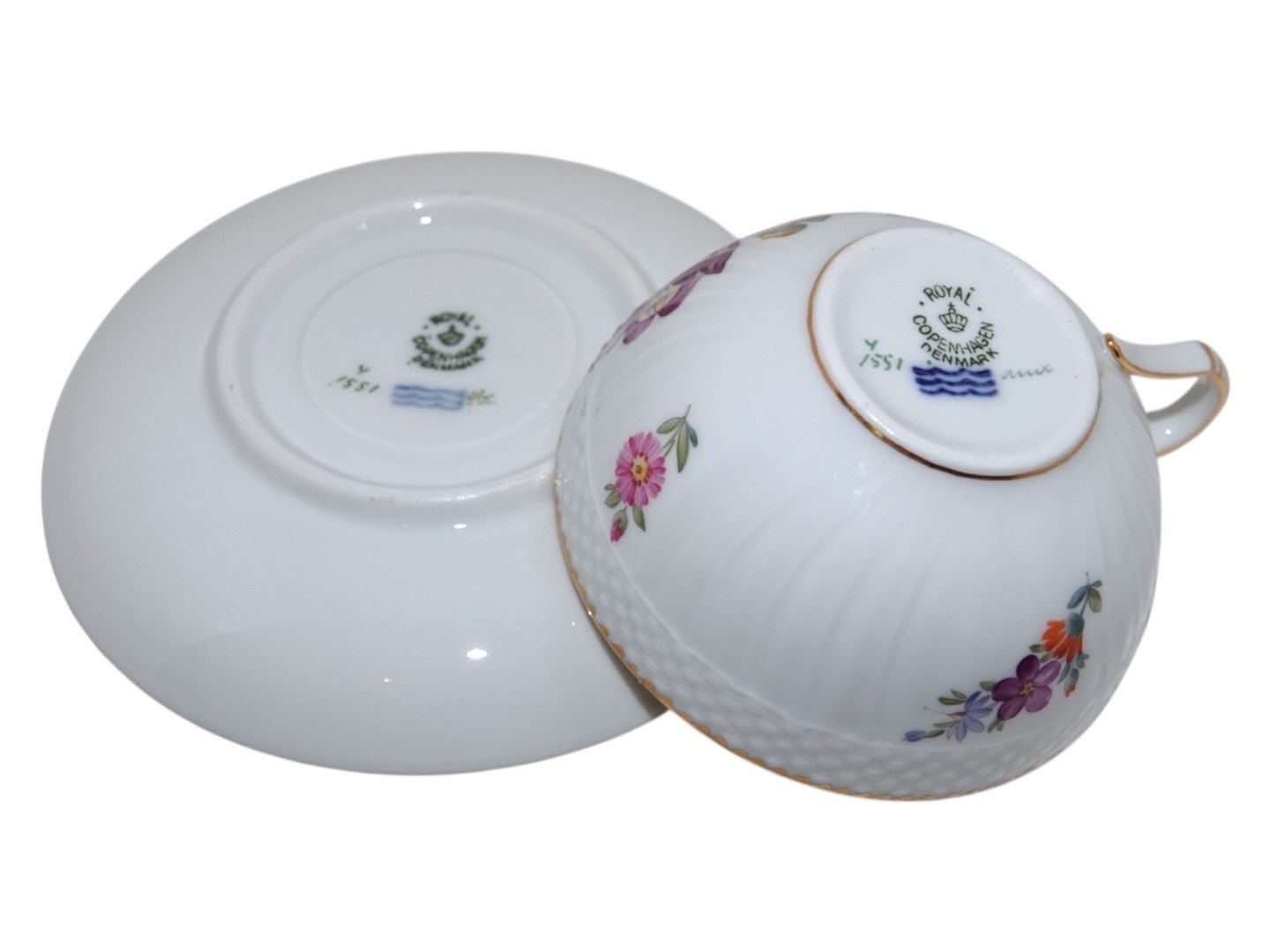 Royal Copenhagen Fuld Saksisk Blomst, tekop med tilhørende underkop.