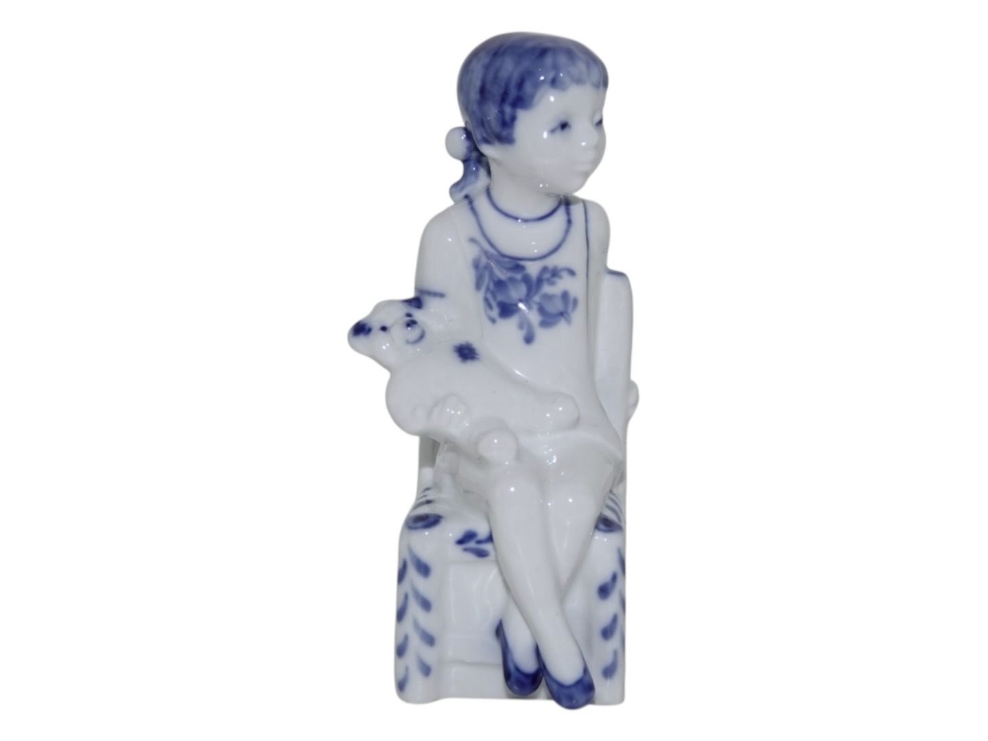 Royal Copenhagen Blå Blomst, sjælden figur af pige med bamse.