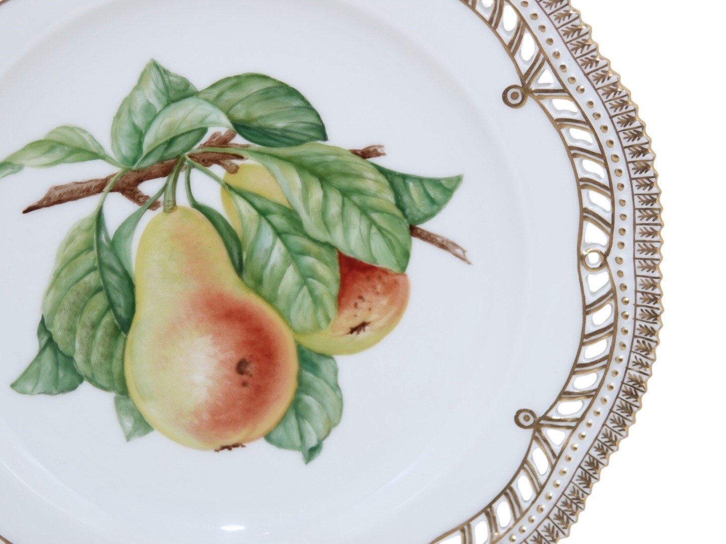 Frugttallerken med pærer og gennembrudt kant 22,5 cm. #3554