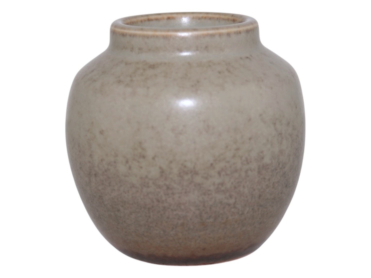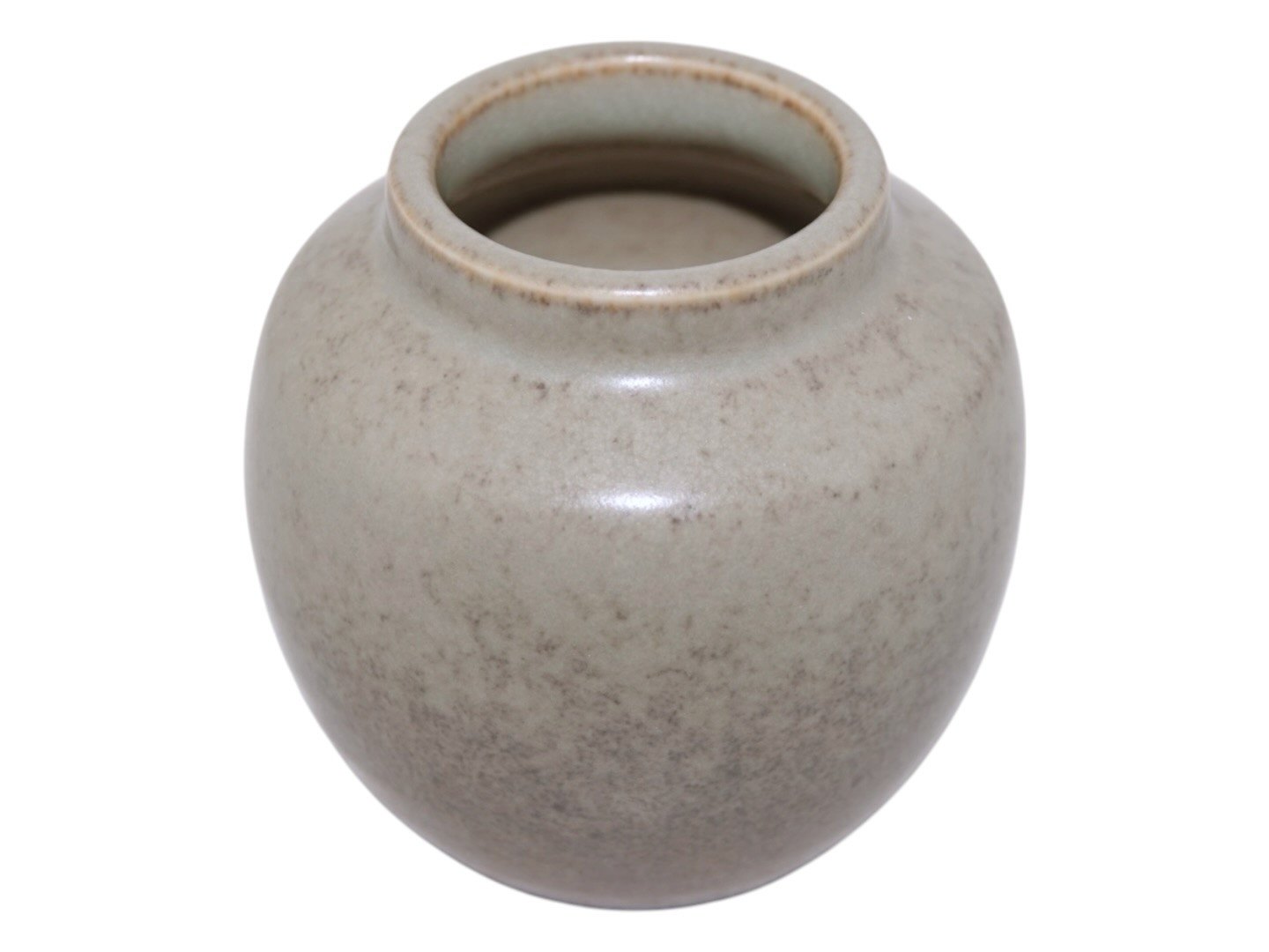Lille Bing & Grøndahl keramikvase i enkel moderne stil med en lys glasur. Den er mærket med nummer M27. Denne er produceret mellem 1915 og 1948. 1. sortering. Højde 6,6 cm. Perfekt stand uden fejl.
