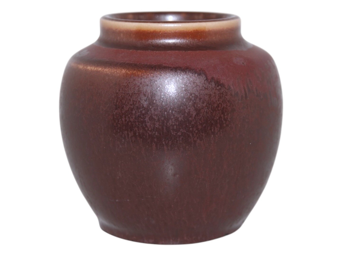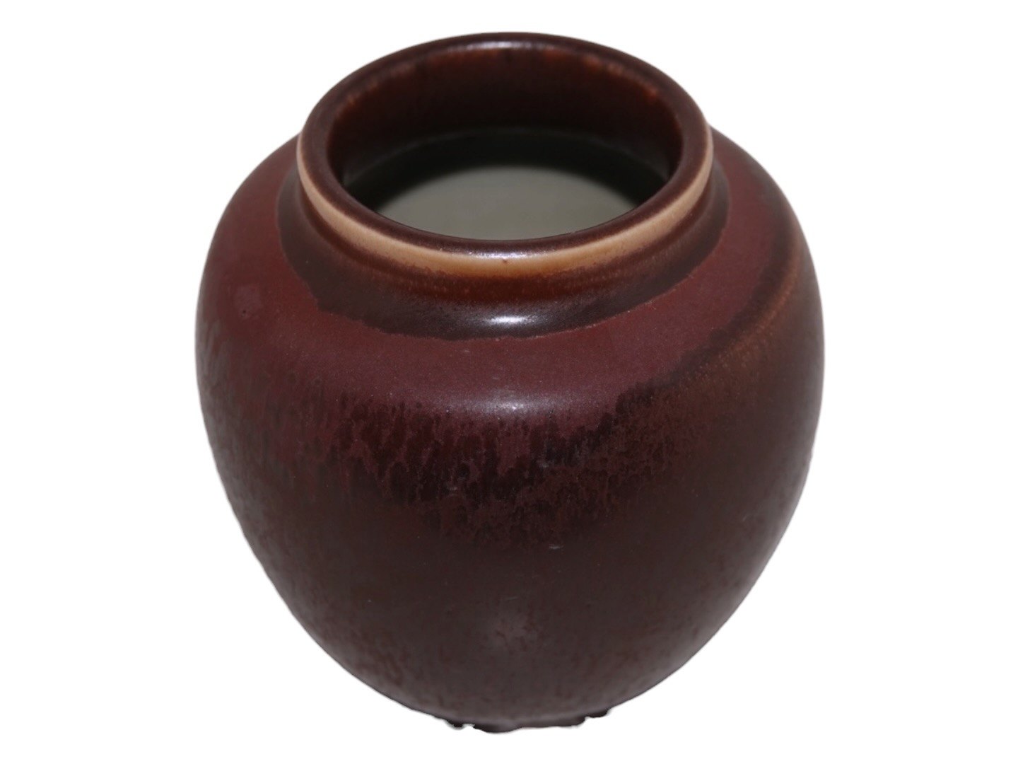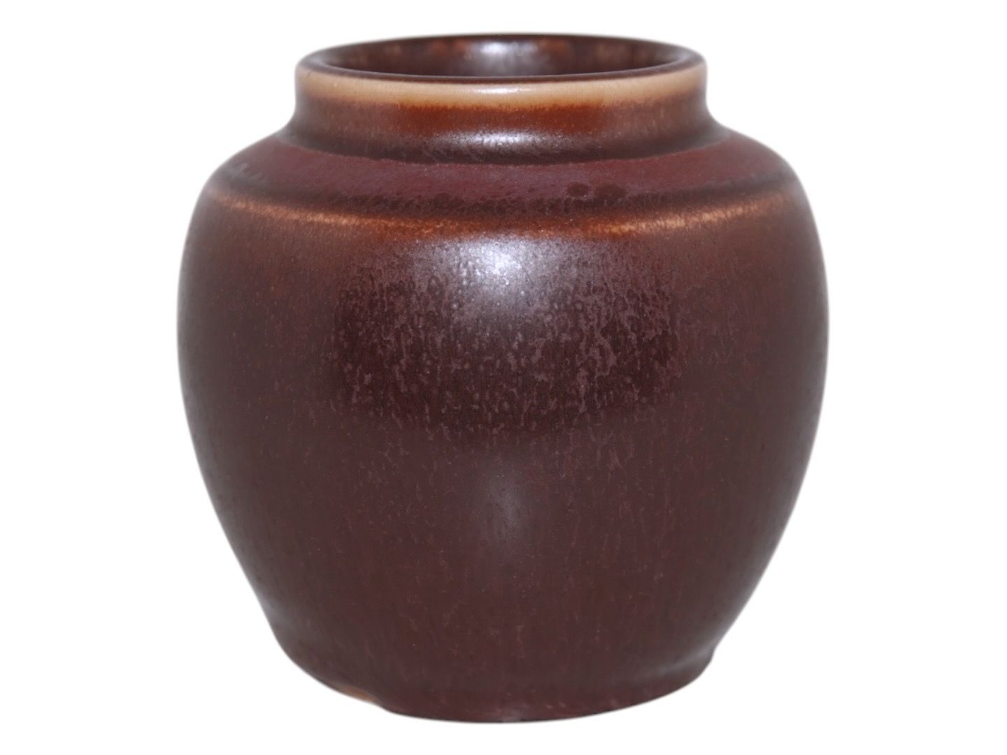 Lille Bing & Grøndahl keramikvase i enkel moderne stil med en rødbrun glasur.