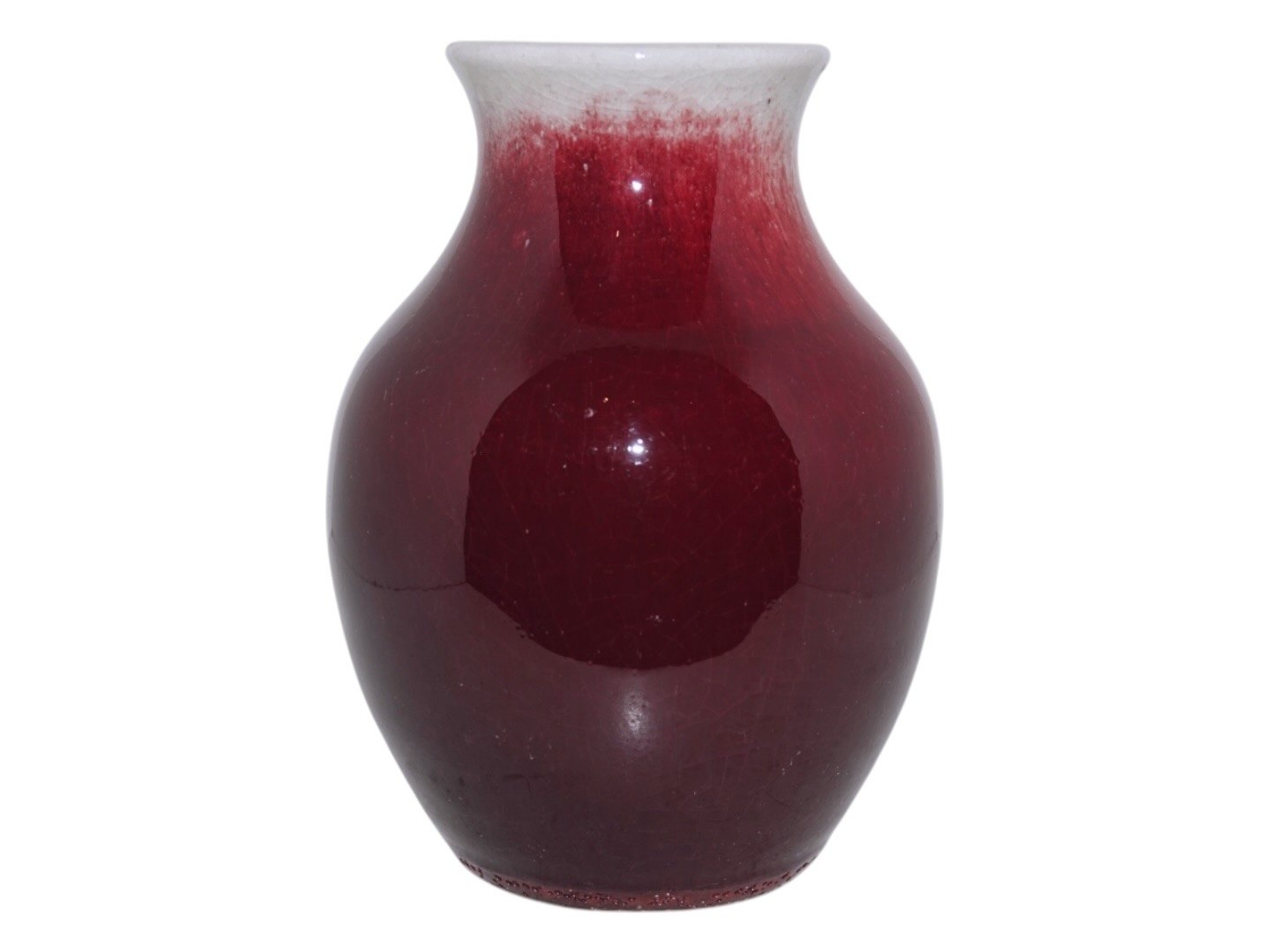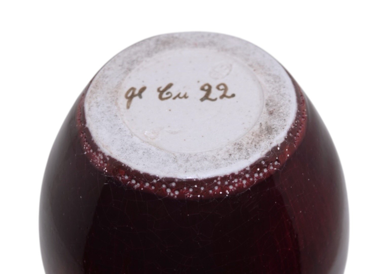 Bing & Grøndahl keramikvase med rød lustreglasur. Den er mærket "gl Cu 22". Denne er produceret mellem 1915 og 1948. 1. sortering. Højde 12,3 cm. Perfekt stand uden fejl.