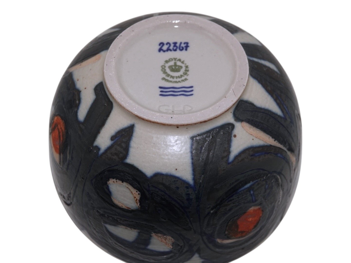 Royal Copenhagen keramik, skål designet af Gerd Hiorth Petersen. Dekorationsnummer 22367. Denne er produceret mellem 1969 og 1974. 2. sortering. Diameter 13,2 cm., højde 8,5 cm. Perfekt stand uden fejl.