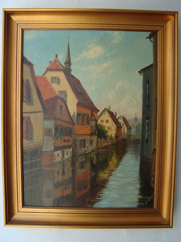 Bymotiv med kanaler, antagelig fra Nürnberg.